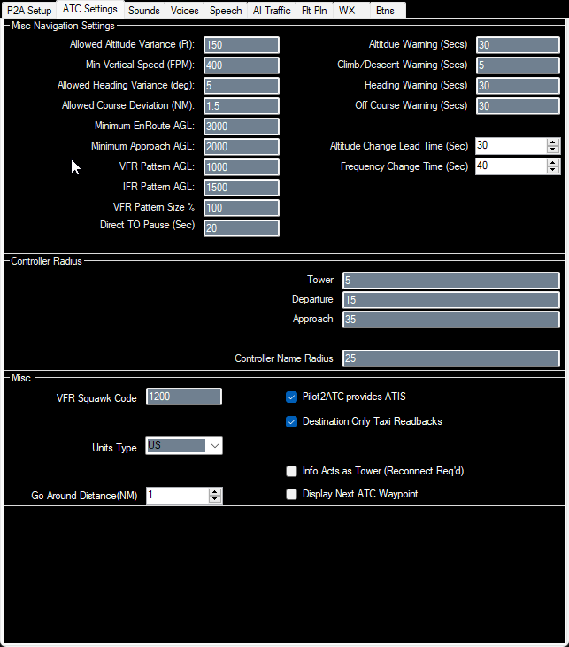 We exchanged several emails with respect to an unrelated issue he saw which was that tower never gave me a freq change call and he made a fix in the code related to that for me to test, but I didn’t get any responses the several times I inquired as to the ATC issue even in the emailed exchange. I took their only responding to the tower issues as not wanting to get into discussing FSLTL ATC matters. I’m going to test with the default ATC and see if it behaves any differently. If it does, it tells me its with FSLTL’s implementation not connecting with what pilot2ATC is expecting, and if it doesn’t, it means I’m likely doing something wrong.