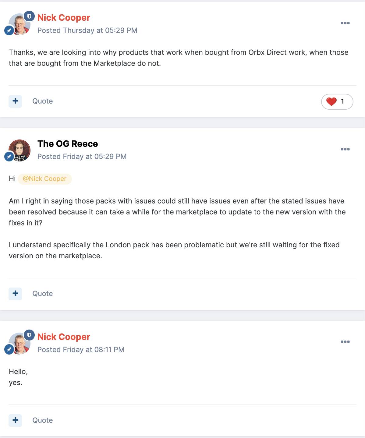 Interesting posts on Orbx forums about updates getting stuck in the Marketplace submission process.