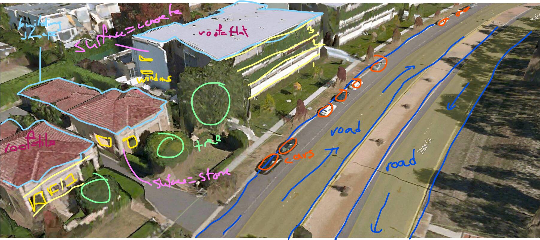 What I mean is that with photogrammetry, they could retrieve the actual height of a building or house, which kind of surface it has, where are the windows, etc. and from there they could generate an AI building that look similar to the one in real life. For cars, I think they could make the AI remove them like in photoshop and put a generated 3d model at the same place.