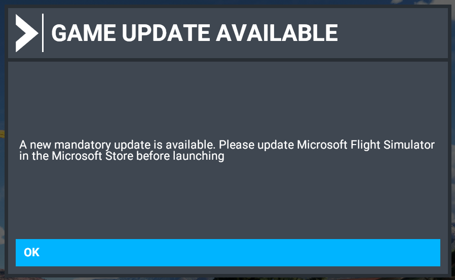 Post that i restarted 5 times and then the update window in the ms store popped up (did not pop up before 5 times). Now that it updated the MSFS, i launch it from the app and it start but then shows the same âMandatory updated requiredâ on the MSFS window. I am back to the square one and now it doesnât show the update option in the store as well. Anyone with same problem ?