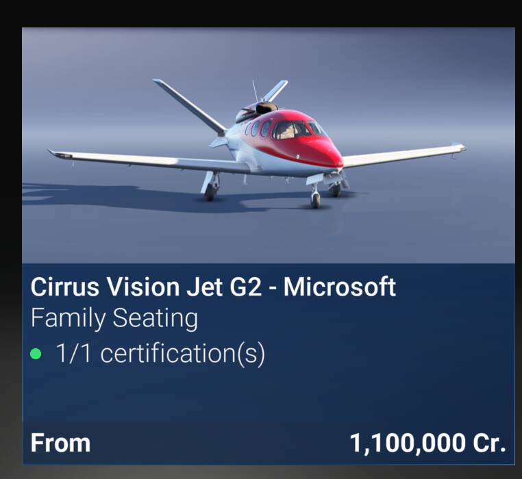 A recommendation now is for you to earn enough Cr to buy a Vision Jet after you buy the VIP company. At first you will fly private missions in the EU or NE USA. Once you earn sufficient Cr you can buy a bigger plane and you will be able to earn a lot more per flight flying VIP. These flights earn far more than cargo but it is a real grind to get the credits.
