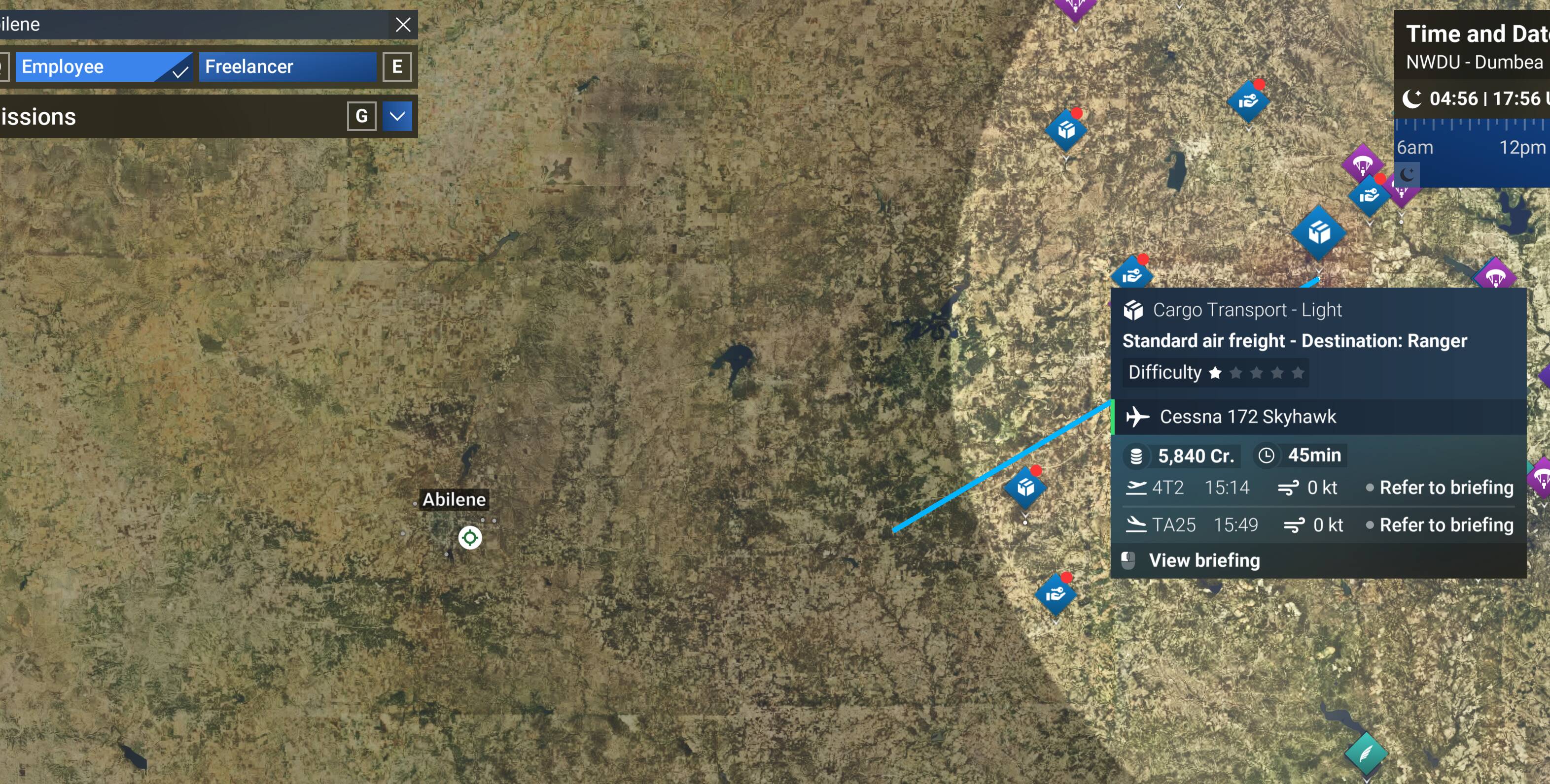 Otherwise, you need to hover your mouse over a mission and see which one gets closest to Abilene and fly those missions. - SEE below (although I do not have quite your circle open you will see what I mean.)