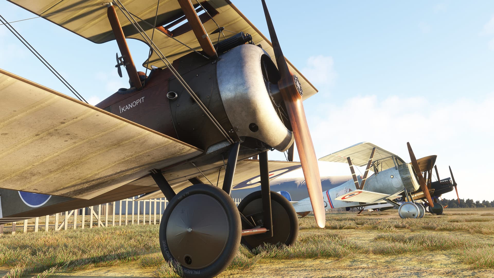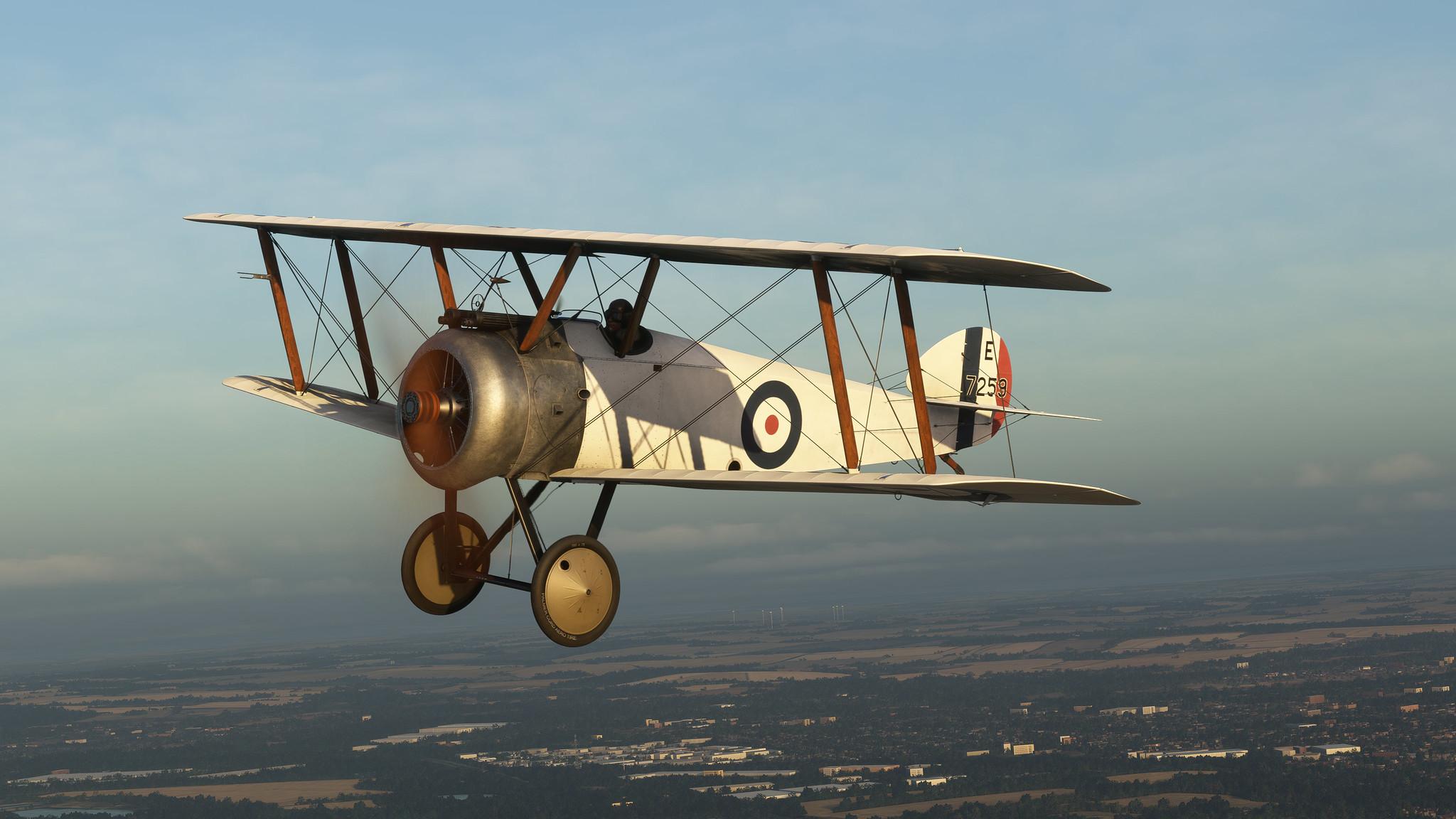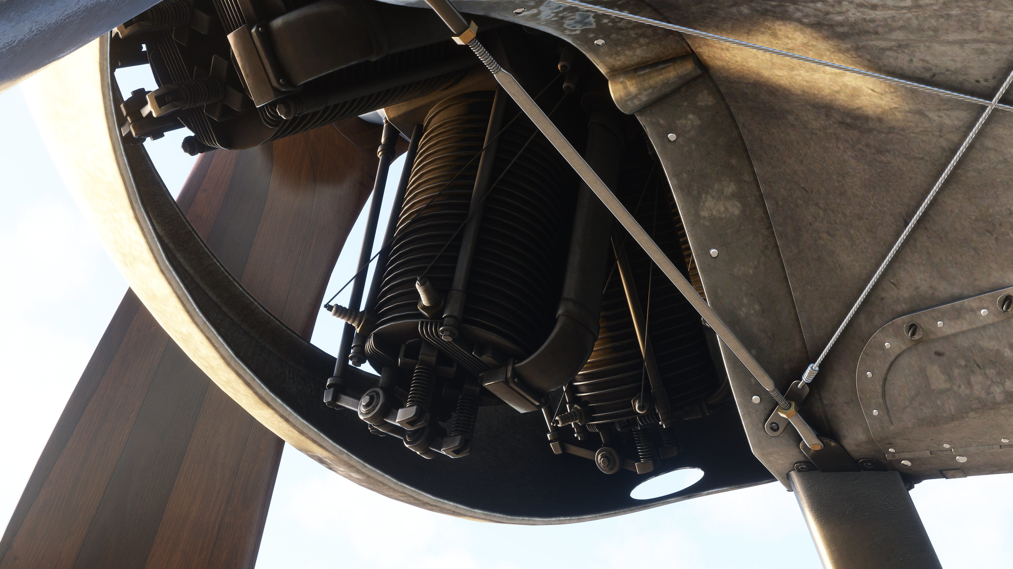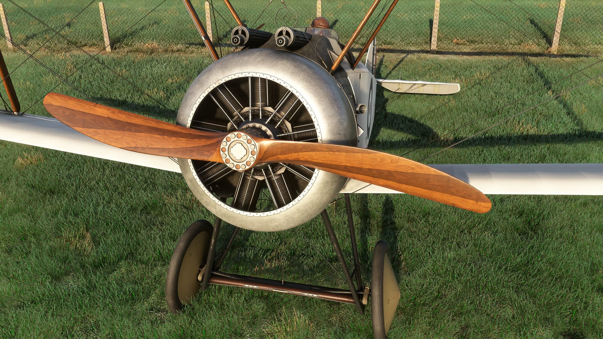 I love this thing. The visuals are absolutely exquisite, both the detail in the model and the detail of the textures. The flight model is also surprisingly accurate. Like the real thing, it has very effective elevators and rudder, while the ailerons are there mostly just to balance the rudder in a turn. And, like the real thing, you can’t take your hands off the controls in flight, as it won’t stay in a straight line for long. Also, true to the real thing, you’re not going to get anywhere much faster than about 80-mph in cruise. The engine/airframe performance and flight behavior all seems very accurate. No trim and no brakes, but the tail skid will slow you down. Short bursts of power and full rudder deflection needed in order to turn while taxiing, but it does it. The sounds are from the MSFS Curtiss Jenny which does provide a vintage-era spit/sputter engine soundset that I think is quite suitable-enough. Really, the only thing I can critique is the fact that the spinning rotary engine should be just as blurred as the prop, when spinning, since they’re both rotating at the same speed. Since it’s not blurred, the engine looks static in screenshots even though it’s spinning. That’s just a pet-peeve of mine. For $13, though, I really cannot complain. I hope that Captain Sim continues their line of WWI aircraft, I think they’re brilliant.