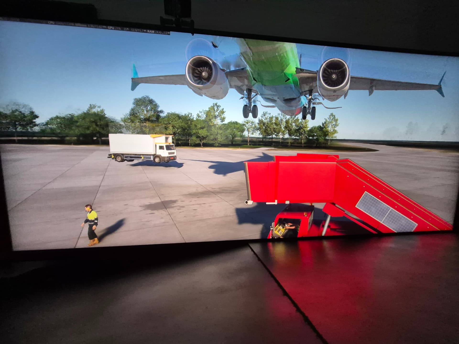 Start a passenger transport mission at an airport without jetways
