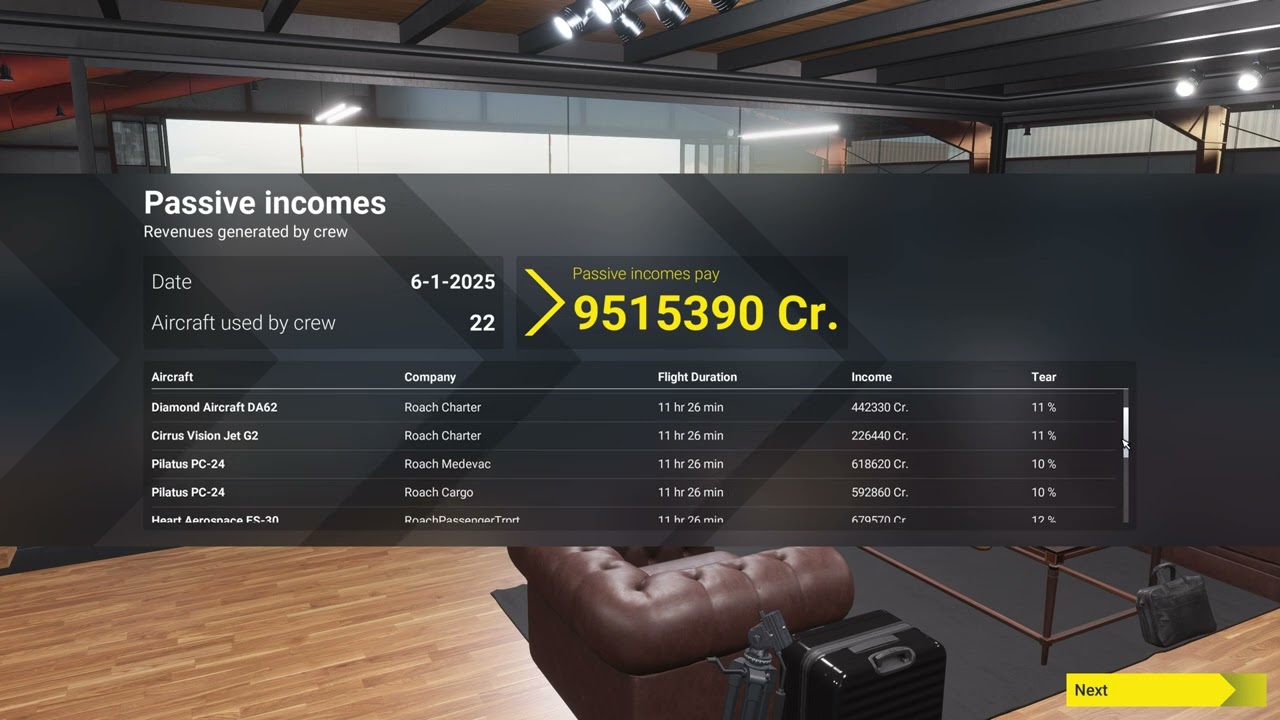 Wow , if you have 101 planes, and it is Cessna 172, you should get at least 101x 200.000 = like 20.000.000 passive income But to maintain al these planes , that would be a challenge. I’m already getting annoyed to maintain and check up my planes.