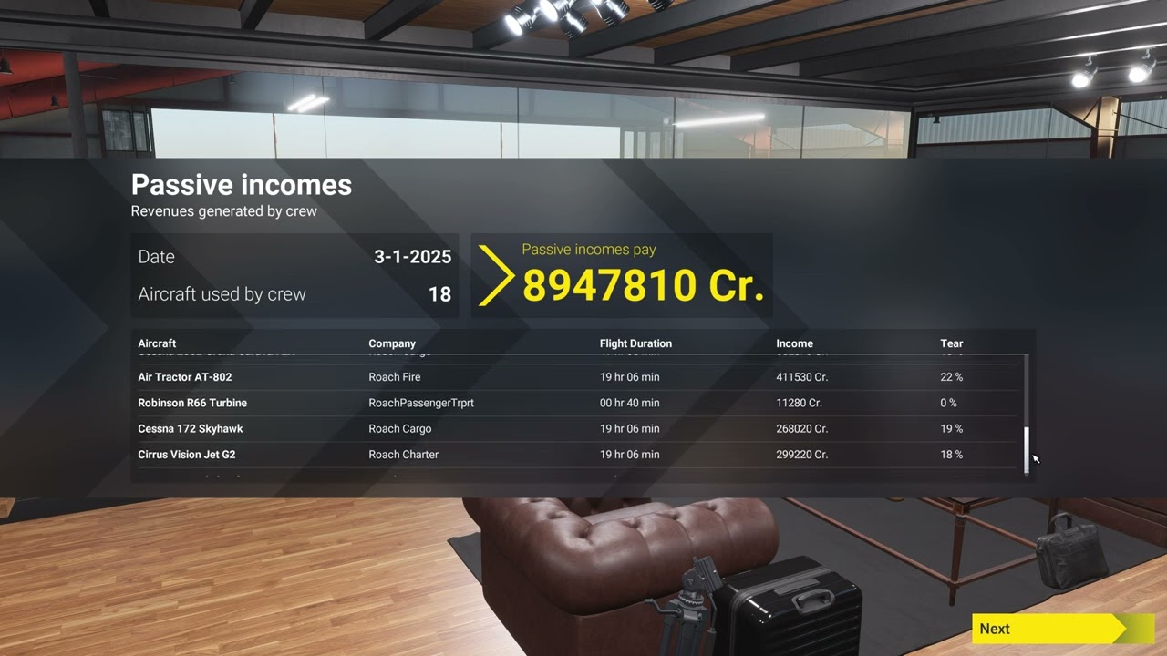So yeah, in the end, I get 7.8 mil, but afterwards the maintenance for all the planes was like 3.2 mil. so 7-3= 4 , so like 4 mil real profit…