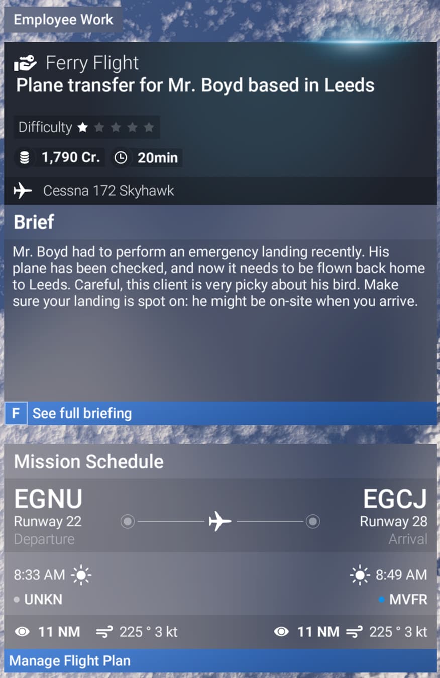 - Start a mission (passenger, VIP or medium cargo mission but probably any mission)
