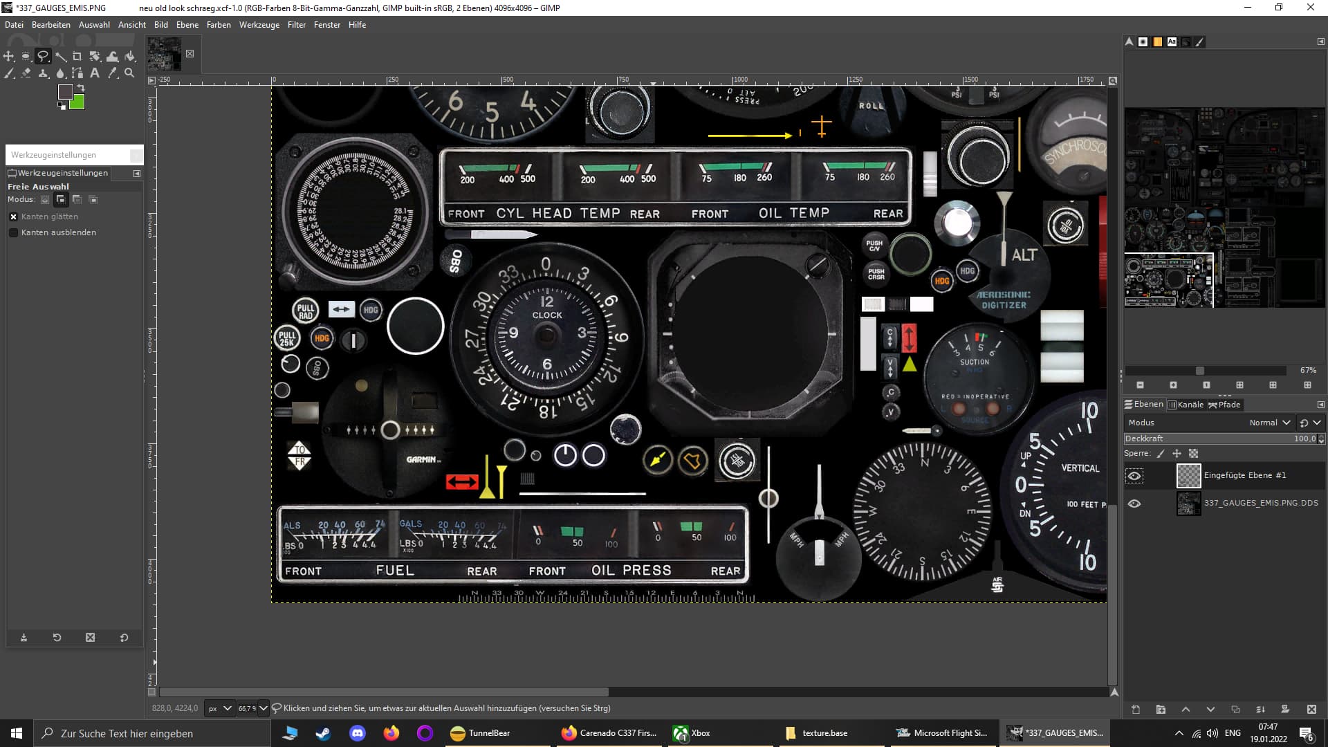 After re-texturing the cockpit and gauges for a few days now I have become too lazy to test every single .DDS file and wait 40 minutes again and again and again after every modification until I am in the Flight Sim main menu to test which .DDS file is the glass texture ![]()