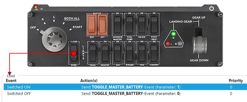 Thanks. I’m very much a newcomer to this and I think it’s a bit beyond me to program. I did try to assign those commands to the cowl switch of the saitek switch panel, but when I flick the cowl switch, it throws the on-screen battery switch. I think it needs more to get it simulating what happens in the cockpit.