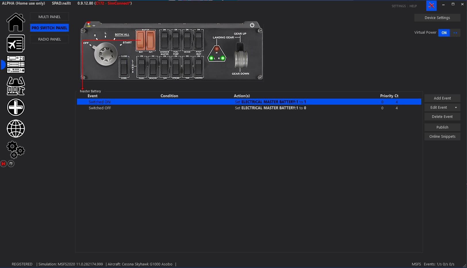 Can anyone point me to how to map the battery standby switch (C172 G1000 Nxi) on spad.next so that I can use it on the saitek switch panel or warthog throttle?