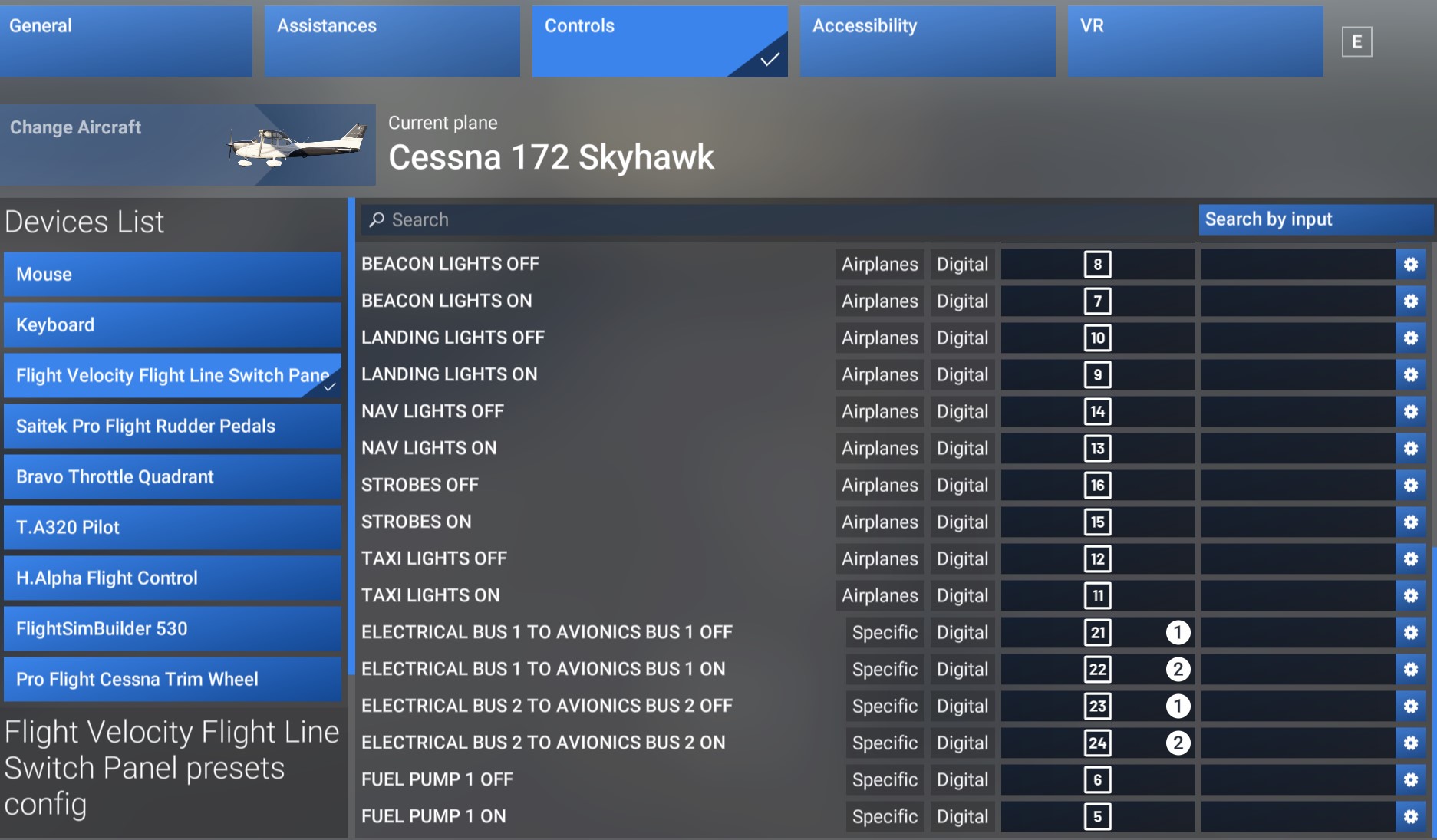 Starts great now, but these are the bindings you need to get the avionics and fuel pumps to work. Some people had issues knowing which action to bind these to.