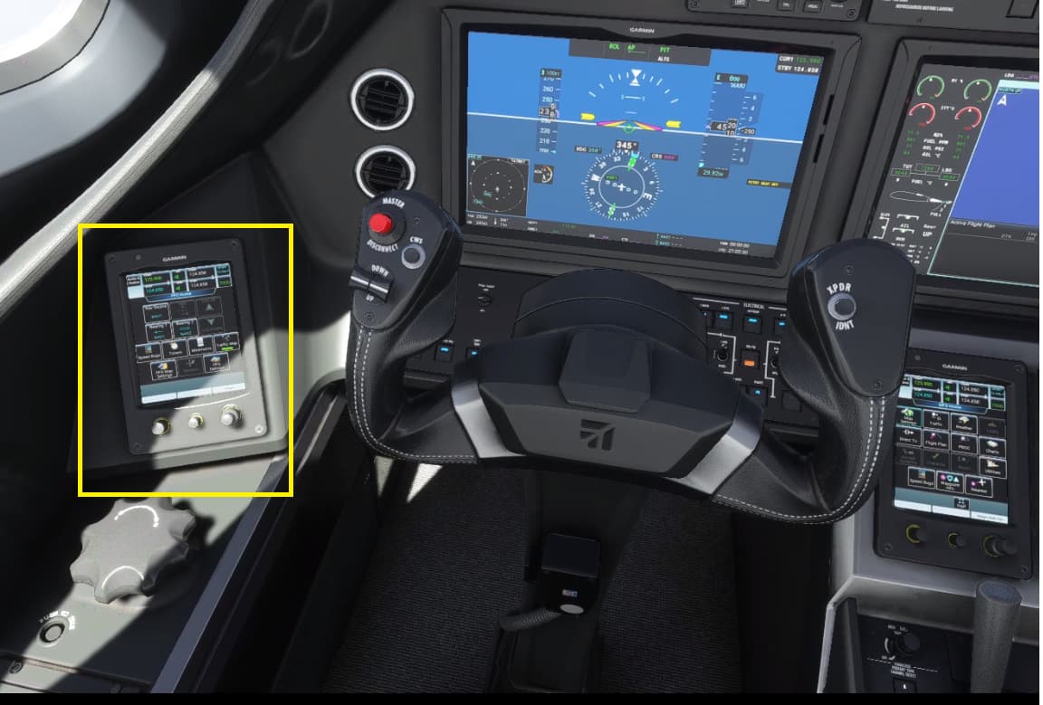The longitude has two additional control panels (GTC) – one at each pilots seat – to accommodate the PFD controls. Remember, the longitude is technically a G5000 system using the G3000 code, so it does not function entirely the same as it does in the TBM.
