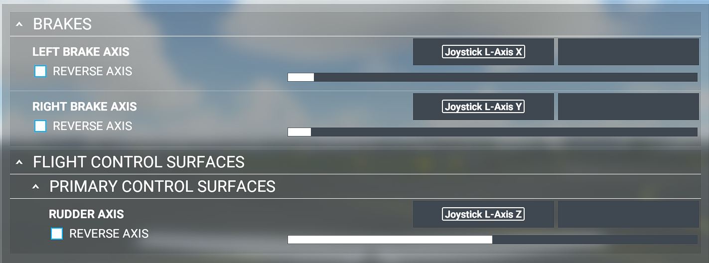 -4- Assign the breaking assignment for the CH Pedals via the controls menu in MSFS 2020