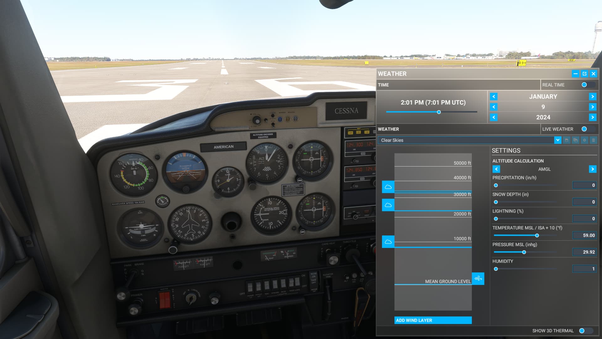 Just out of curiosity I tried to climb the 152 as high as it would let me at Full Rich. As you can see, still (barely) climbing at 9000ft. RPM has dropped off a little more to 2380RPM.