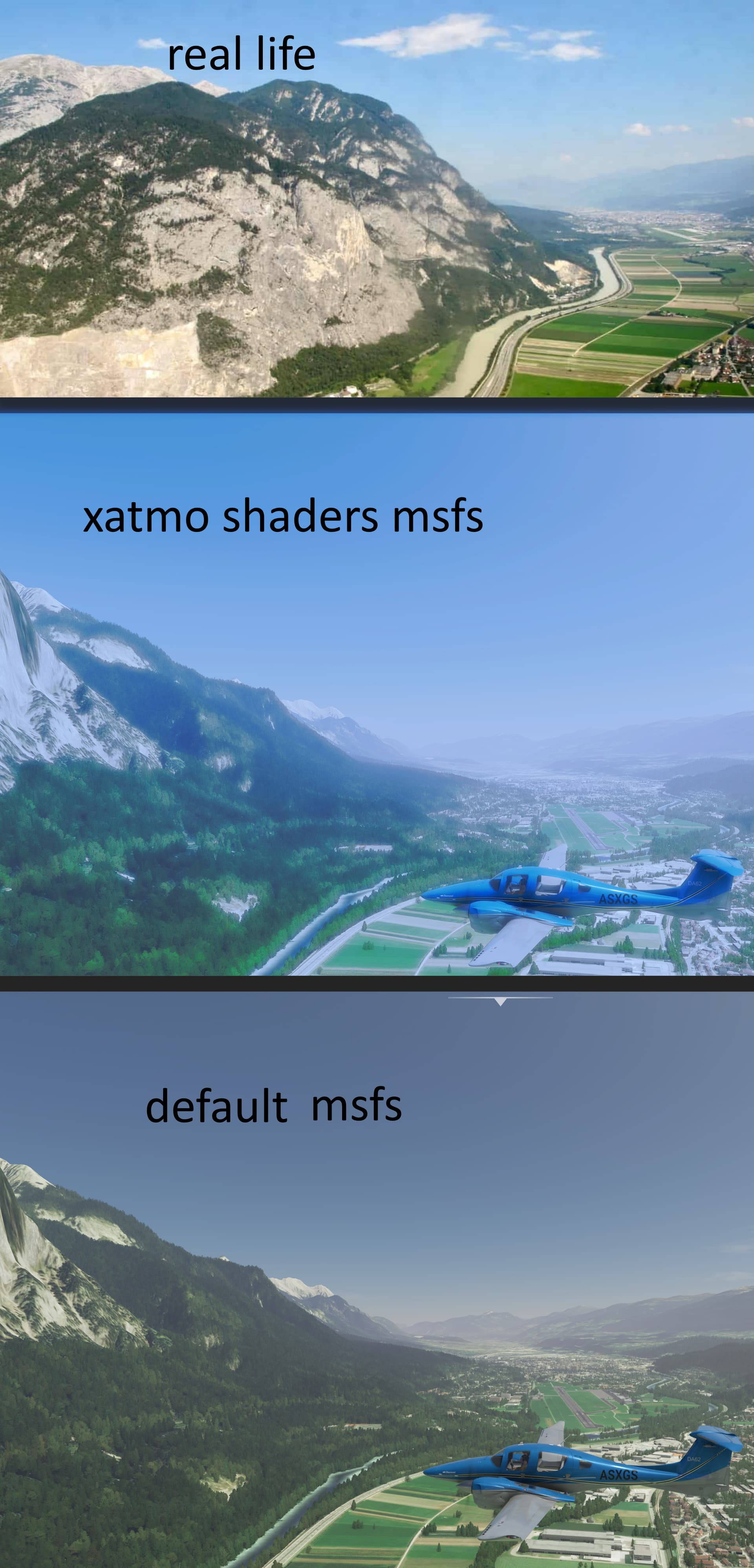 With my old eyes…looking at your last 3 pictures…I have to say the default msfs looks closer to the real life photo than the xatmo shaders does.
