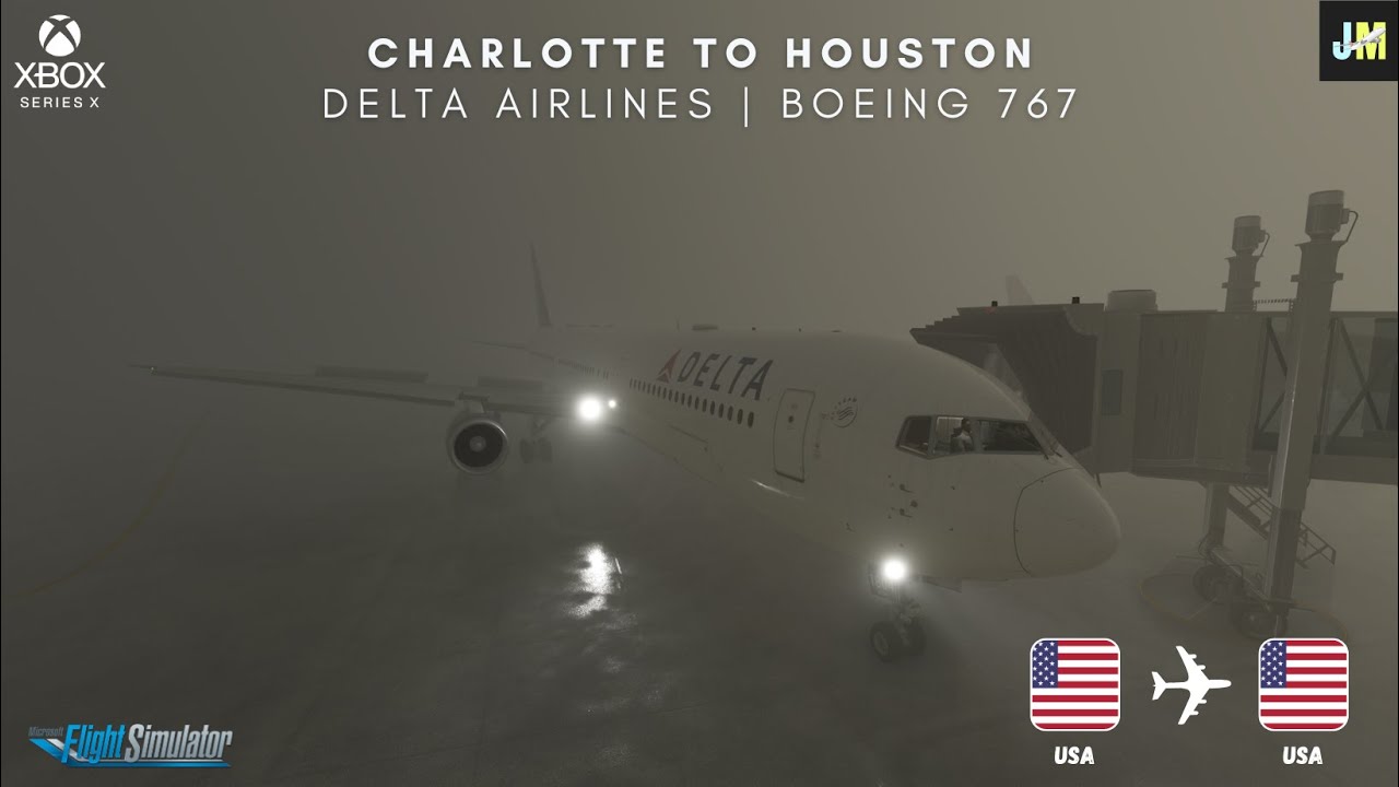 Charlotte to Houston on Delta Airlines via the Boeing 767 | Heavy Rain Conditions | 4K