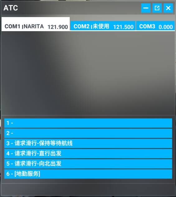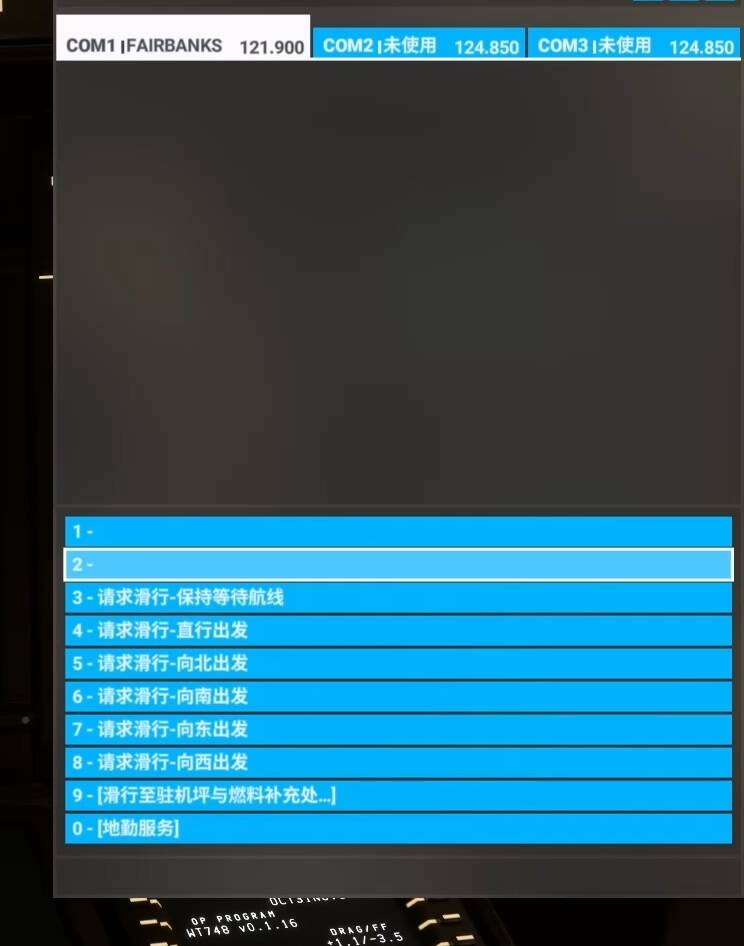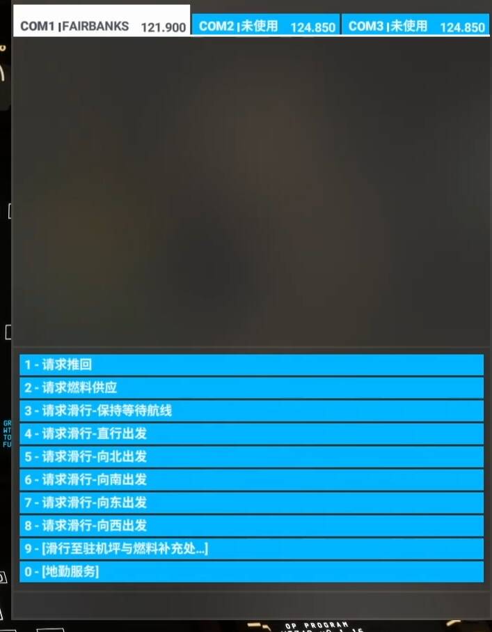 The first 2 items are to changing frequency to ATIS and clearance channel, not the one shows “request pushback” and “request fuel” which are falsely inherited from previous menu. But the functions are changing frequency which are correct.