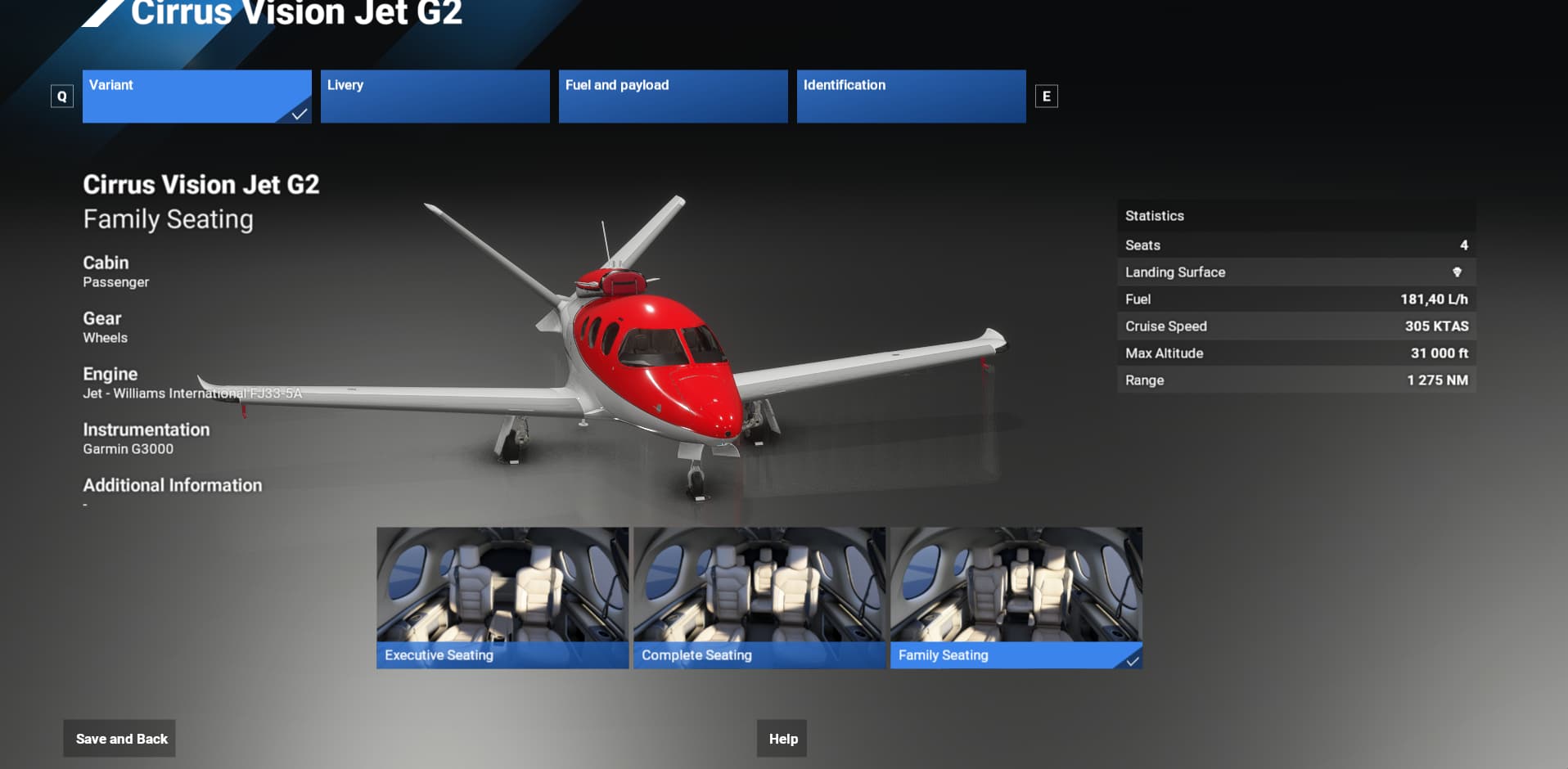 Cirrus SF50 Vision Jet (Microsoft Cirrus Vision Jet G2), Complete Seating Variant