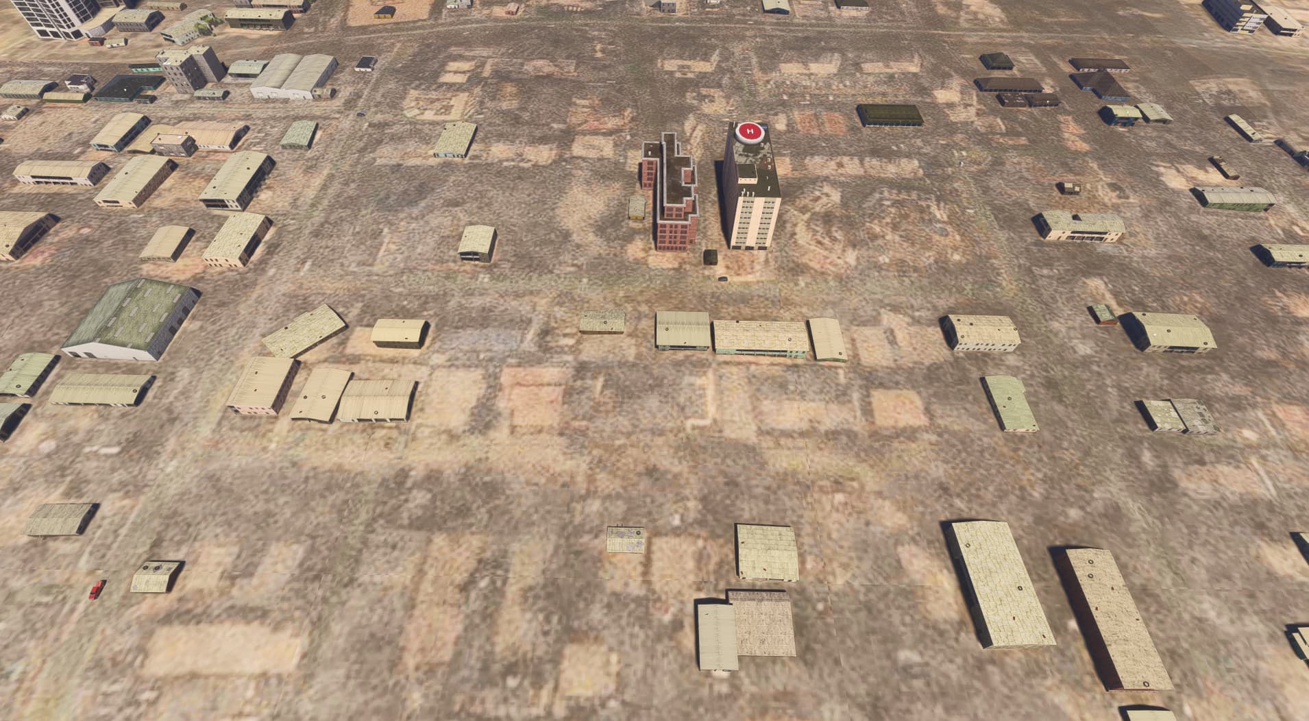Above is an in-game bird’s eye of the area; note the hospital and helipad for comparison. Also note the buildings being present on the ground imagery.