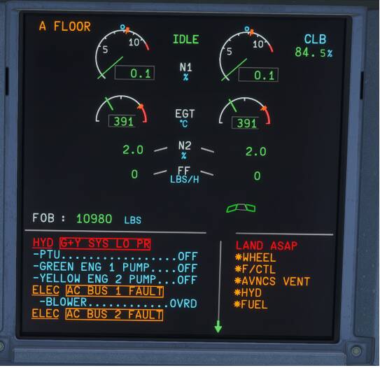 Engines off, Power gone, Hydraulic gone.