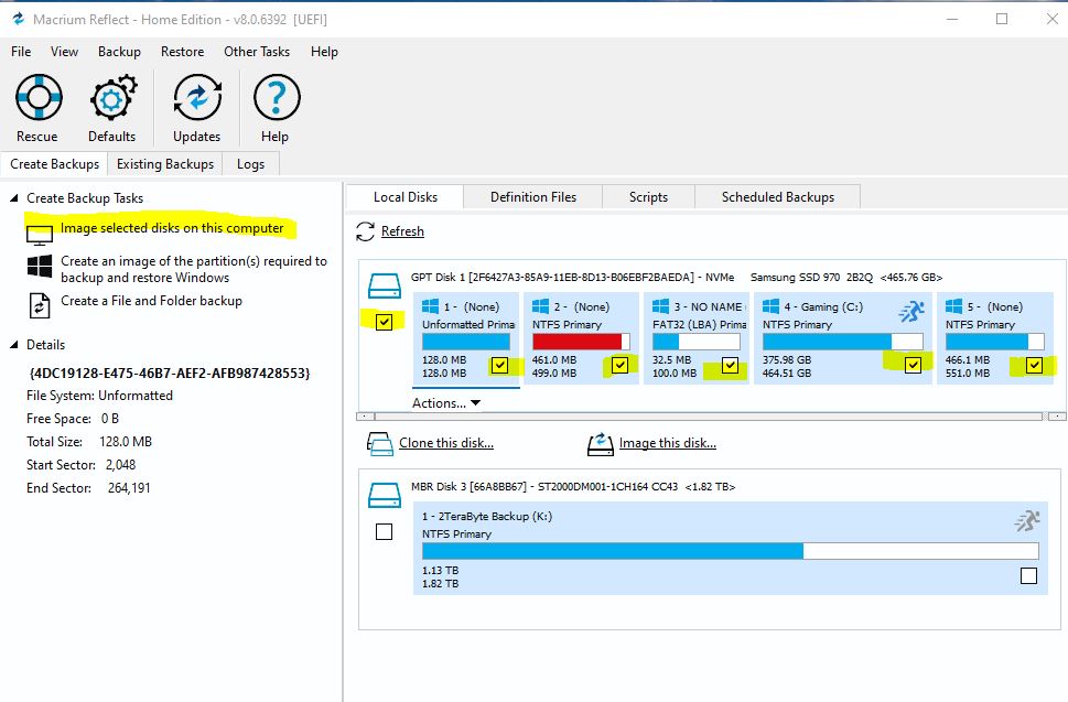 NO…I use the selection ABOVE the one you have marked. Not to say what you have will not work, I just image the “Entire” source disk so that NOTHING is missed. Make sure ALL partitions on the SOURCE disk are selected for the backup.