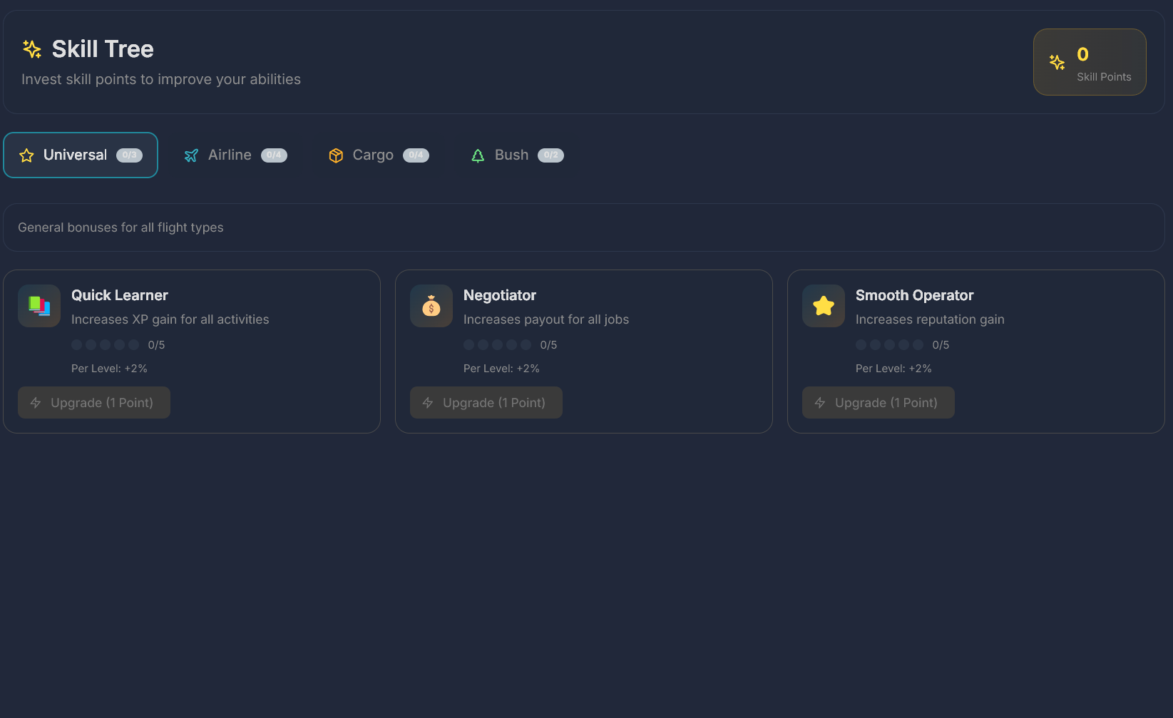 Hangar System: Buy and manage hangars at different airports. Upgrade them to store larger or more aircraft.