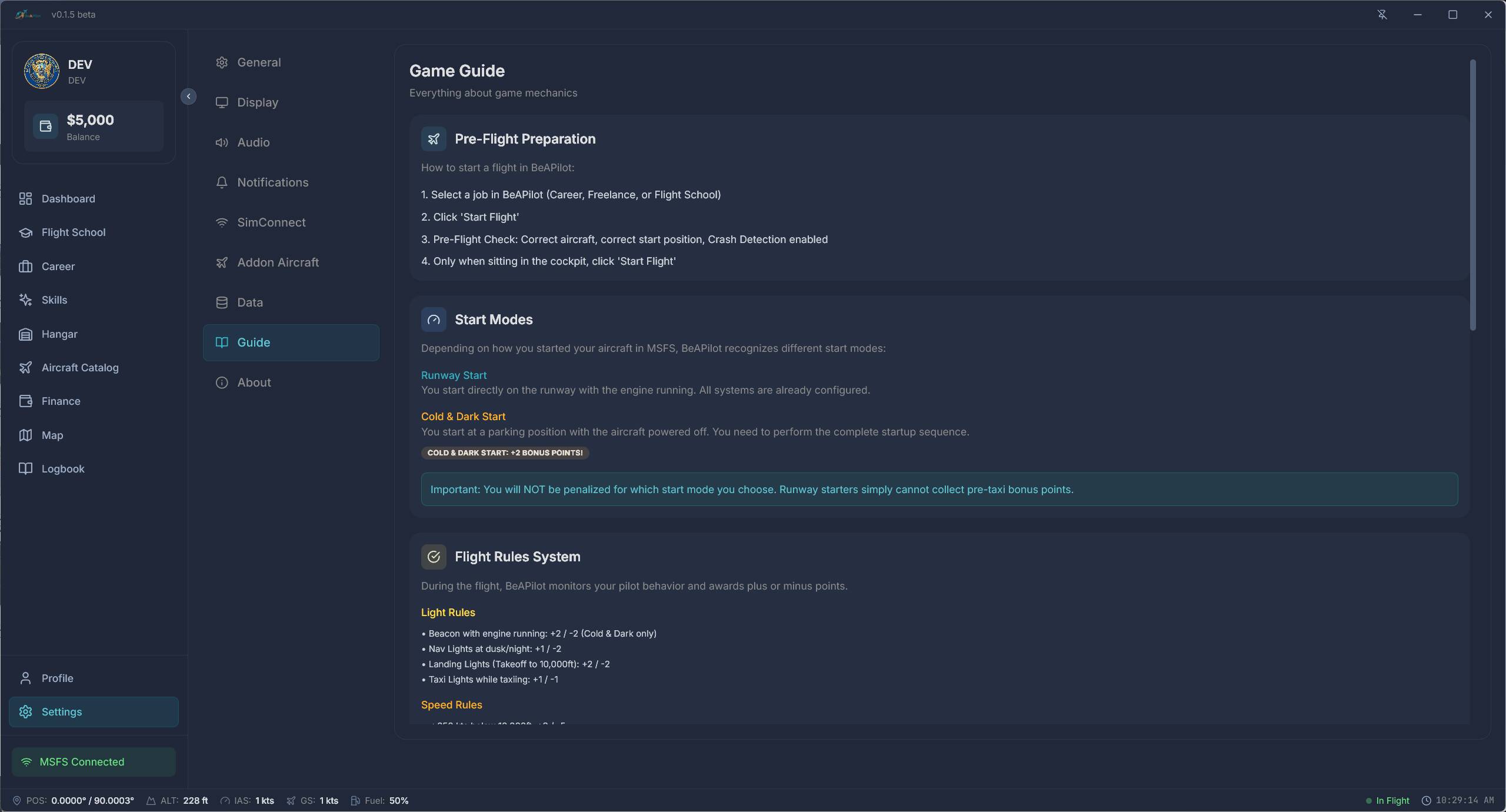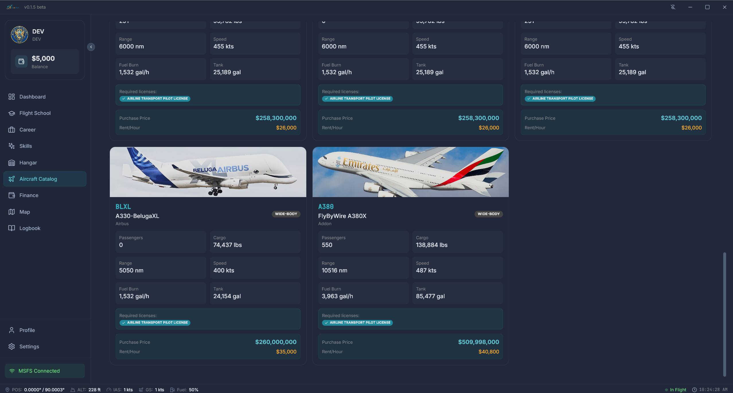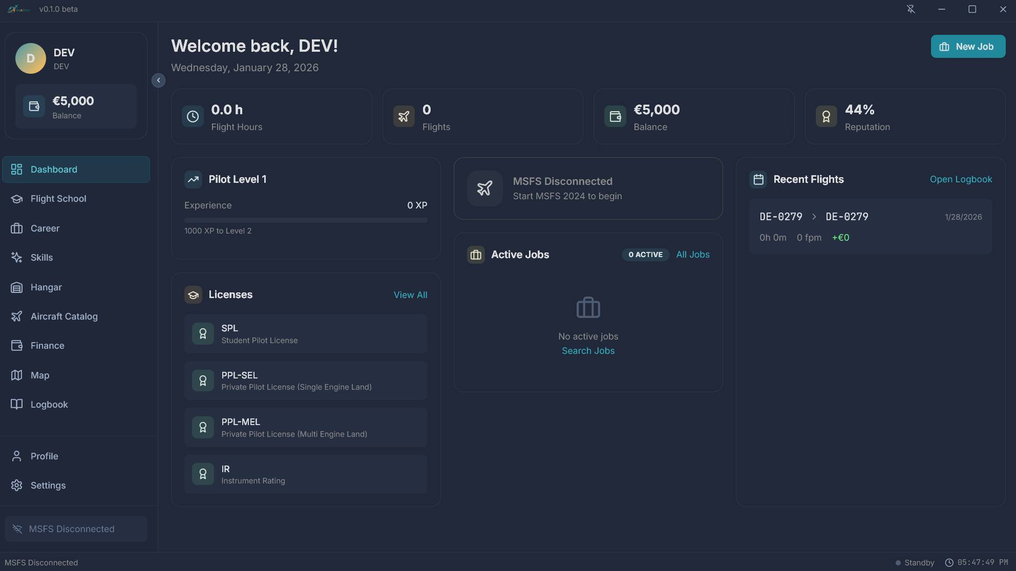 BeAPilot is a standalone career application designed to give your flying purpose. While there are other great career tools out there (like NeoFly), my main focus has been on creating a modern, intuitive, and clean UI/UX while retaining deep simulation features.