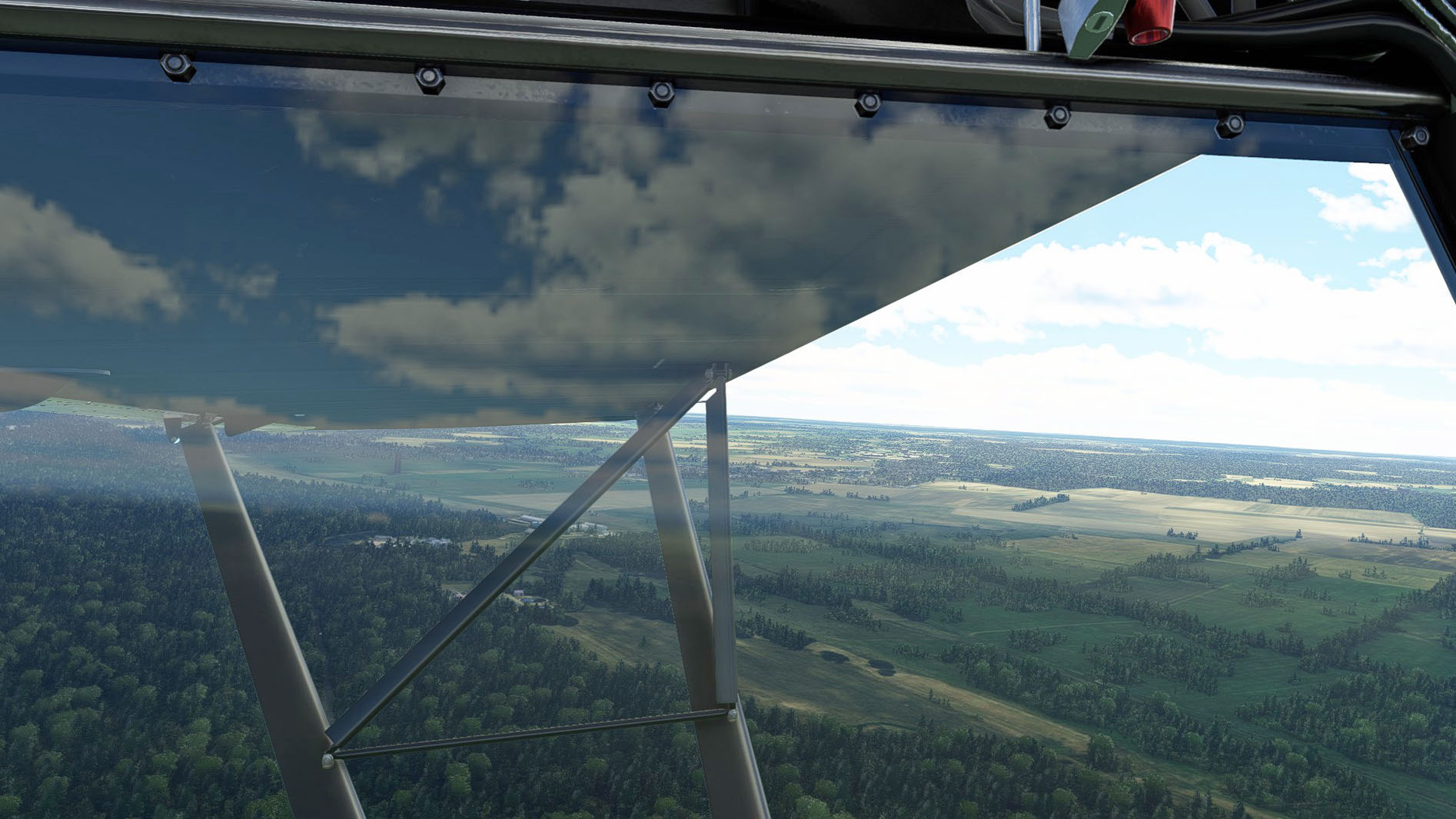 The reflections of the clouds appear under the wing instead of ground reflection.
