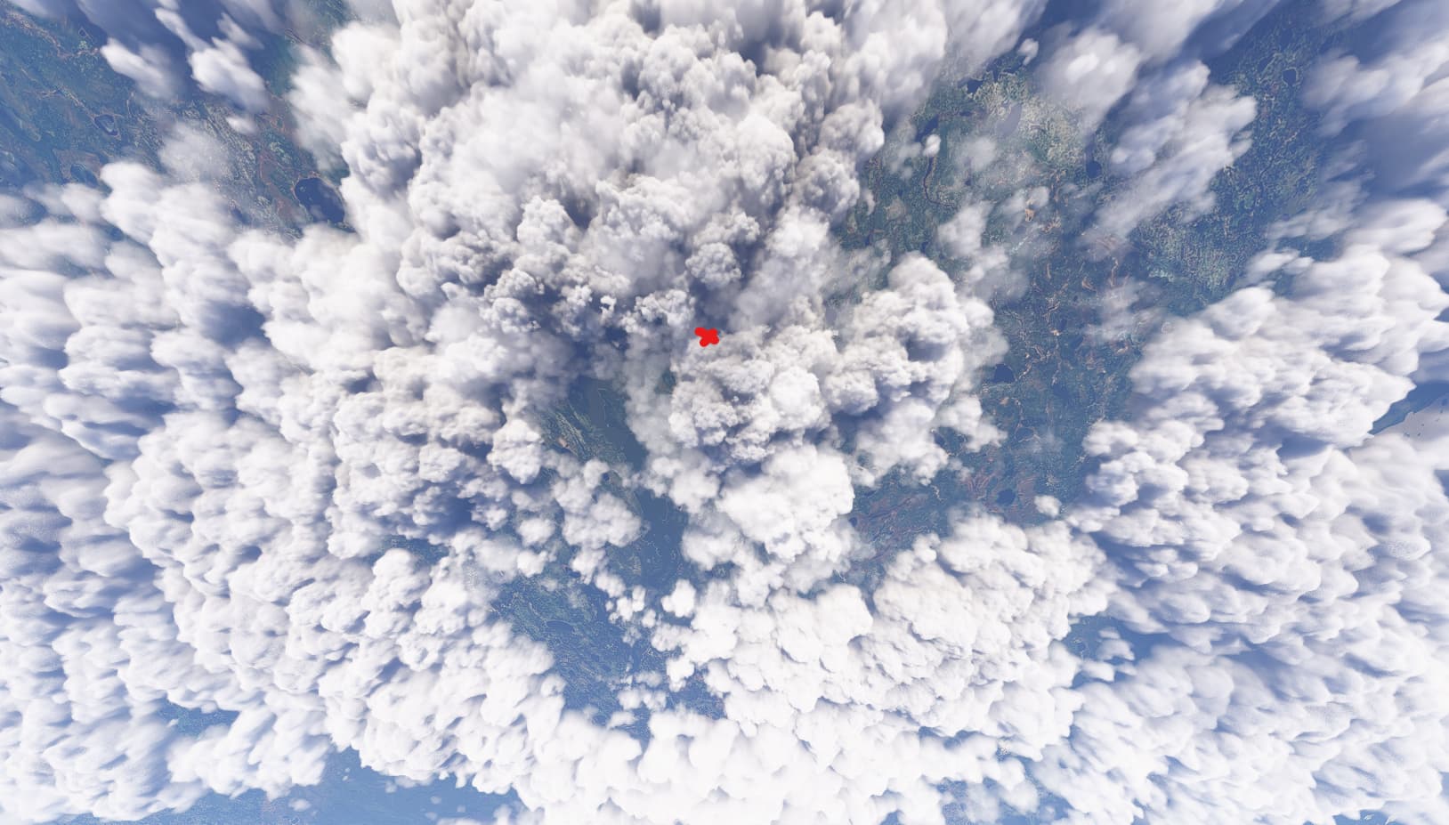 As you load in, the cloud cover remains removed as you can see by the stark cutoff line in the clouds: