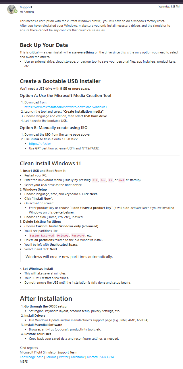 Fourth, the support recommendation was theoretically correct. If someone contacts support and states that they have tried absolutely everything and have no other ideas left, suggesting a last-resort solution such as reinstalling Windows is logically justified. Personally, I would recommend other steps first, but their approach, although quite drastic and admittedly a bit strange, can still be considered acceptable as a final option. It is worth noting, however, that support suggested a full system reinstall instead of recommending a new user account or simply deleting the WGS folder.