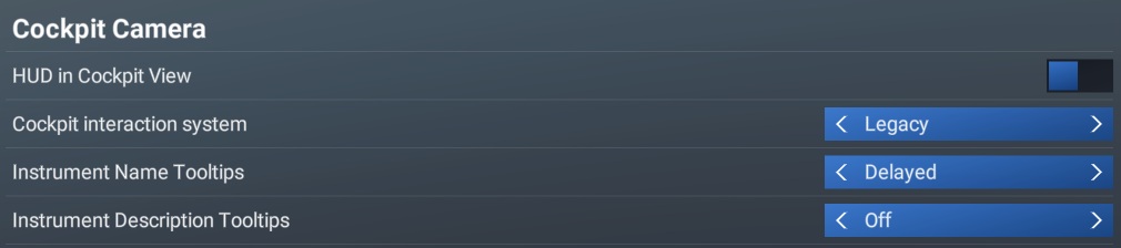 Description of the issue: I noticed the blue highlights when hovering over control switches, even though the cockpit is set for legacy. It can be helpful, but once the layout is known, I find it annoying and want it to stop.