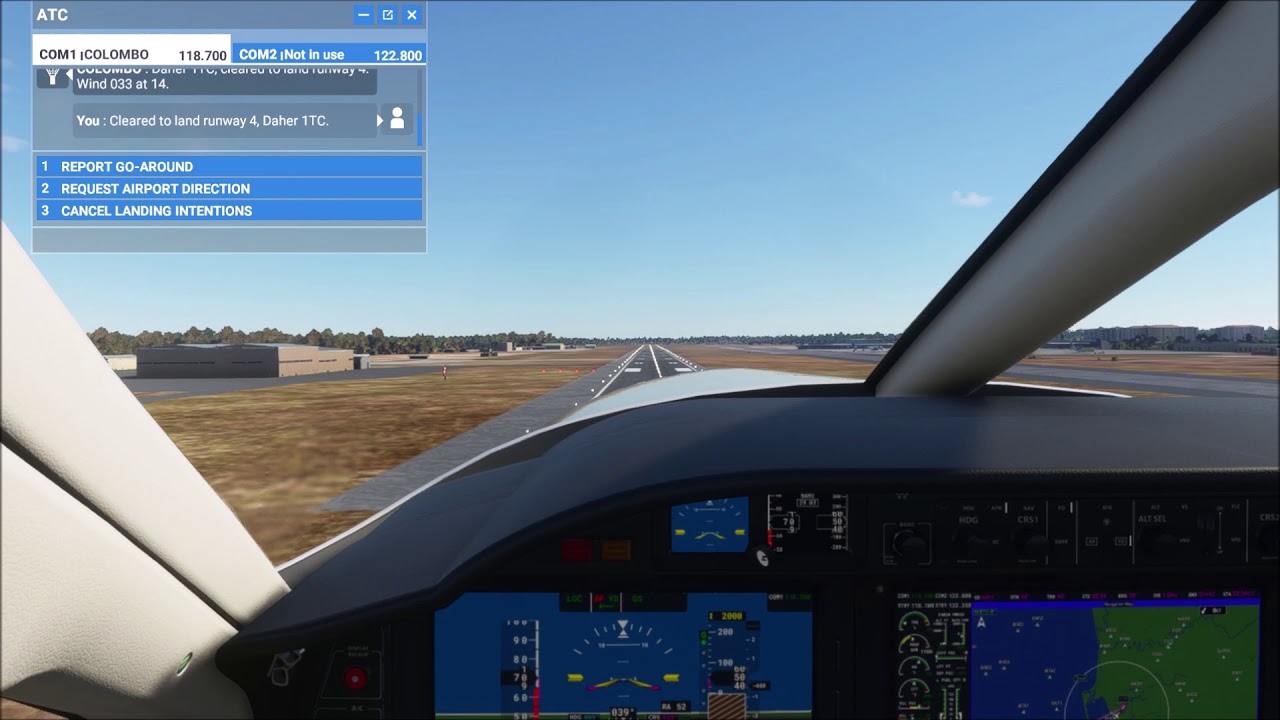 I love a good, smooth landing. This one is heading into Rwy 4 at Colombo in Sri Lanka. It was almost a straight in shot from the Maldives. I took her up to FL 250 for a nice, quiet ride. The latest version of the WT G3000 package has some very nice features that I had time to play with.
