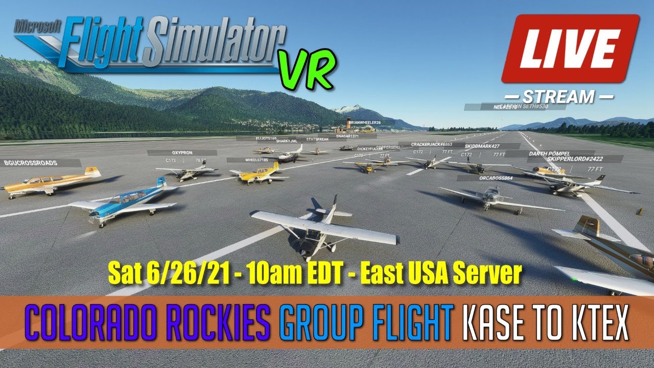 Colorado Rockies Group Flight LIVE Stream on Youtube Saturday 6/26/21 10am EDT East USA Server Group flight on the MSFS East USA server. We’ll depart from Aspen (KASE) and fly to Telluride (KTEX) Let’s keep flight speed to around 140 kts. Flight plan is KASE ► WASEO ► LINDZ ► GLENO ► SLOLM ► LOYYD ► ICIES ► COQKU ►PLACR ► CEXEP ► KTEX. I’ll be flying the SR22 (pace @ 140 KIAS) in VR with HP Reverb G2… All pilots (2D and VR) are welcome. Choose your aircraft, and lets fly! Please spread the word! https://www.youtube-nocookie.com/embed/mw5OA2IsnT0