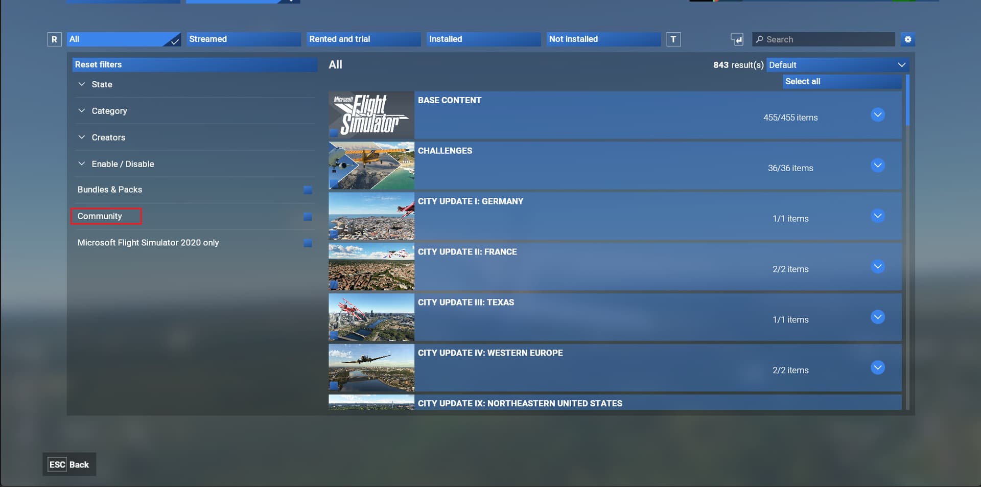 It is physically at the same location as before. Have they reclassed any items that were not default or purchased from the Market such that they would not be activated during startup. I see this in many CowanSim heli’s and instruments/etc. that were typically available prior to the update. Library screenshot below. You cannot even see the Community items in the Library List, just the MSFS 2020 Community - Disabled. Selecting one of those does not offer the “Enable” option, just “Show Selection Only”. All default or items purchased from the market are available for use.