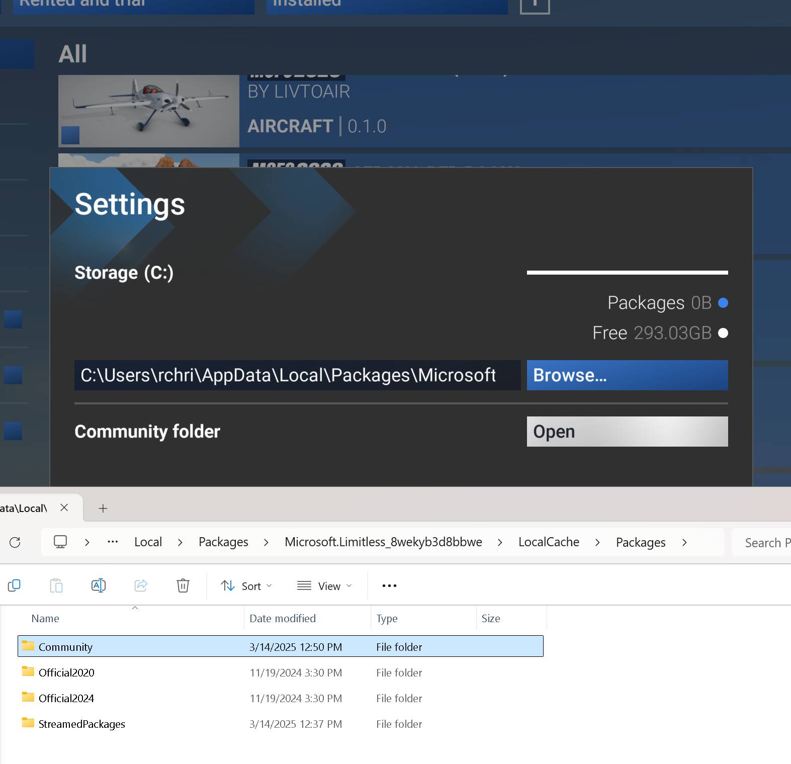 AncientDisc6642, appreciate you sharing, but I don’t believe your accessment is correct. I have been flying FS2024 since it came out. Folder locations have been understood, and I have had no problem at all until the update. As a test I changed the name of the original Community folder, and started the sim to watch what transpired. As expected a new Community folder was created. BUT, inside of the Community folder there are now the Community, Official2020, Official2024, and StreamedPackages folders. The only one with content is the StreamedPackages. This update has restructured how the Packages content is structured. Now to test placing FS2020 items in the new location to see if it appears in the sim.