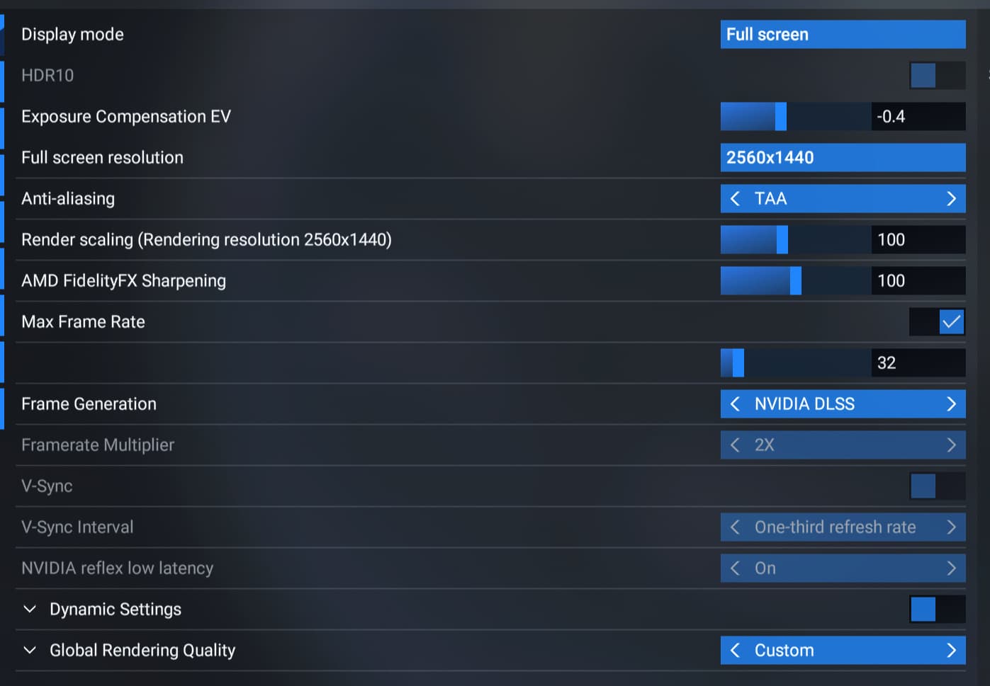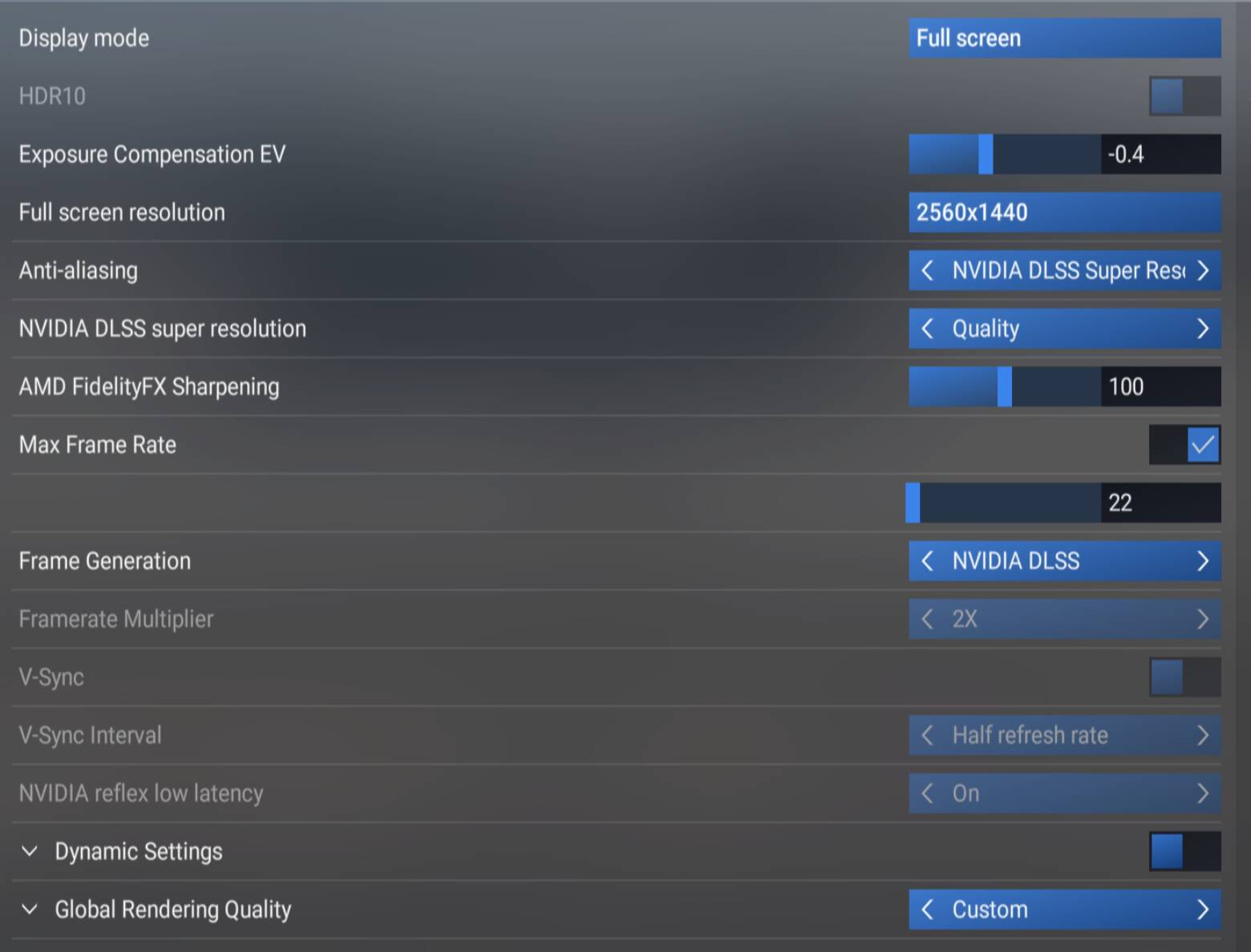 If you are not using the DLSS+FSR3 combo, please share screenshots of your graphics options clearly showing all your settings in this topic.