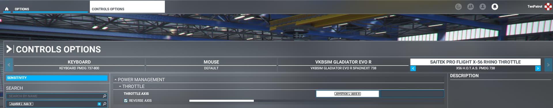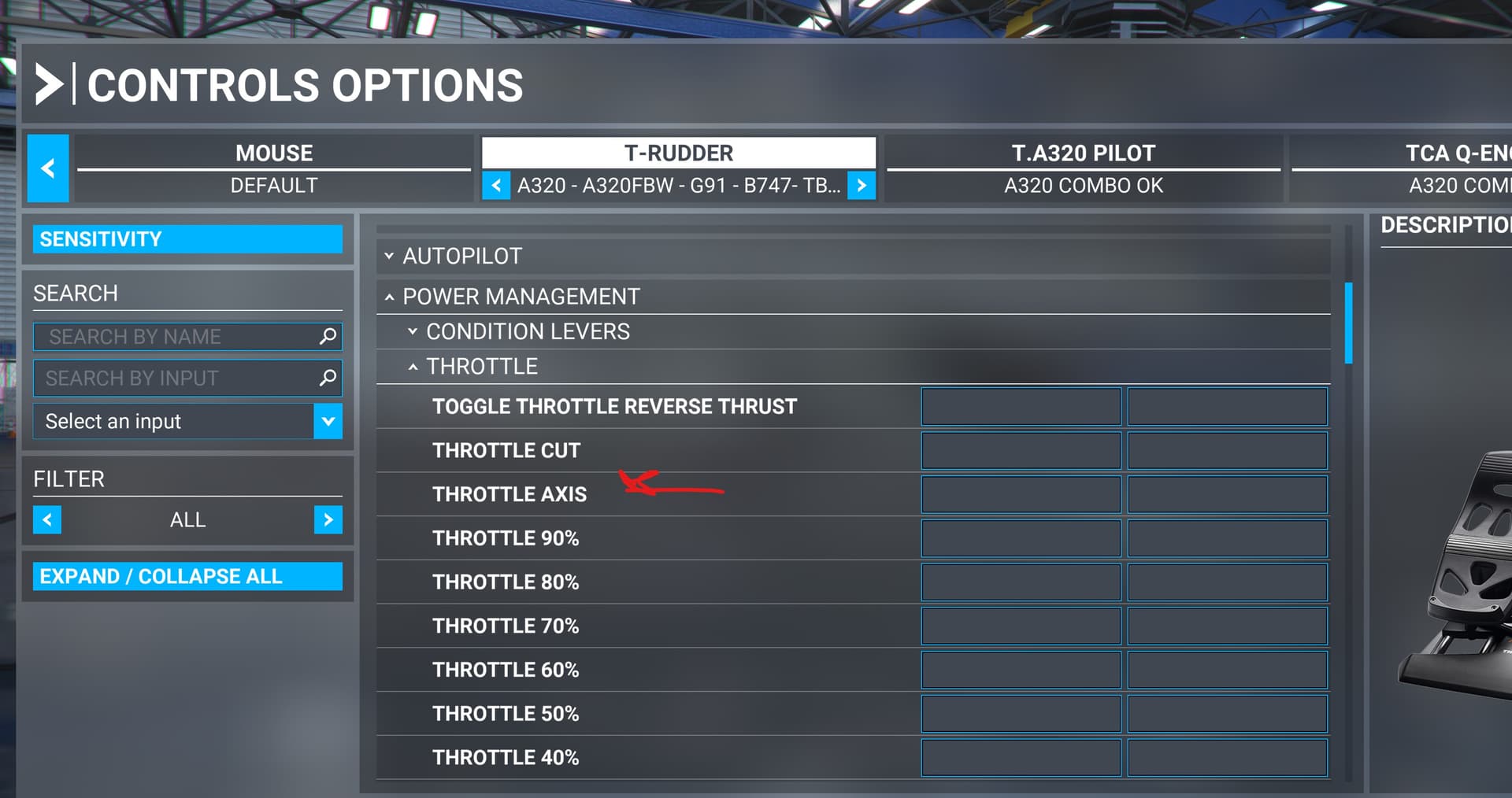 Options—>Controls Options—>peripheral name—>Power Management—>Throttle—>Throttle 3 Axis