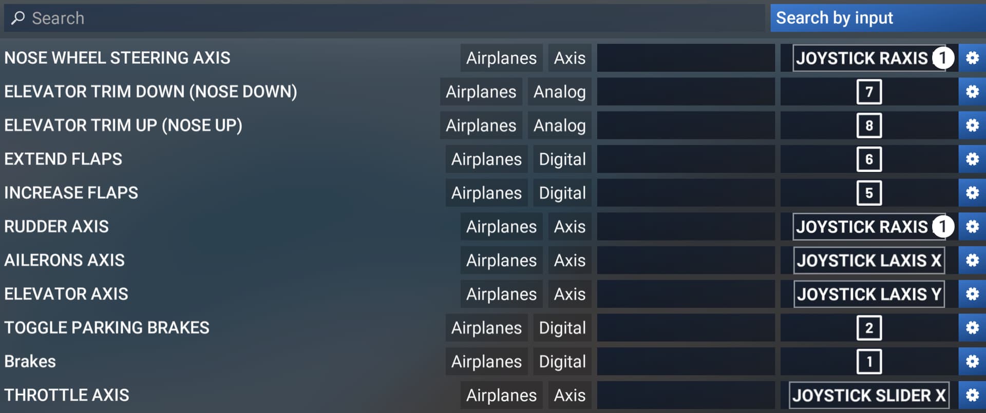 Then used the right column to assign them. These settings are working for me - the POV switch isnt working yet but I can fly at least…