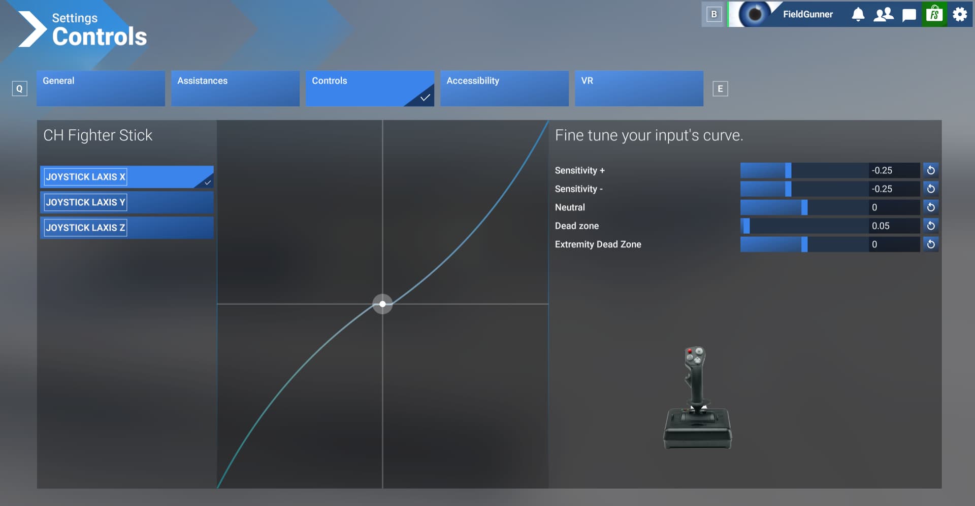In Settings / Controls / Fine tune your input’s curve, the sensitivity and other sliders can be set BUT when moving an axis - such as the joystick - the white dot (axis point) doesn’t move and just stays in the center of the crosshair.