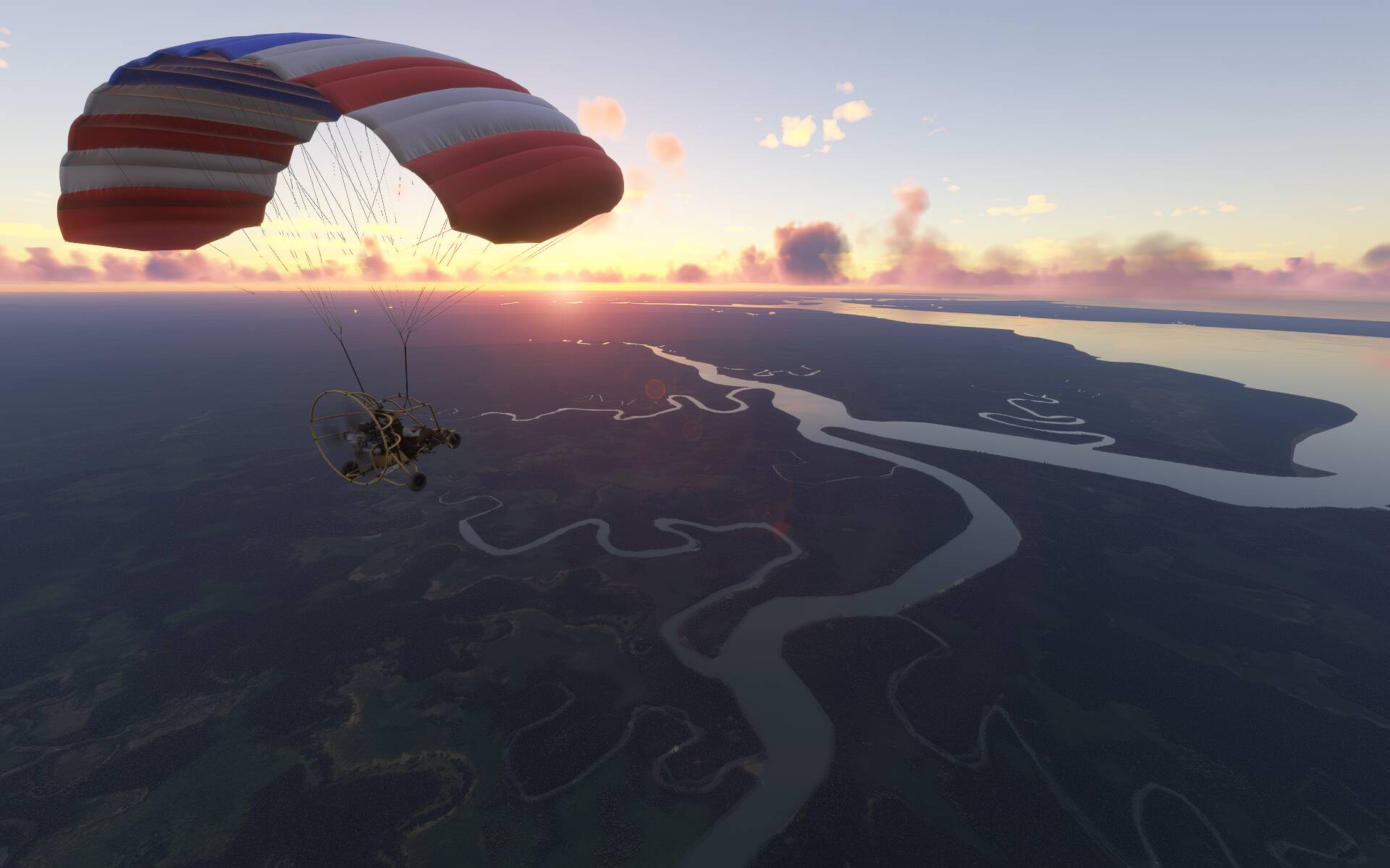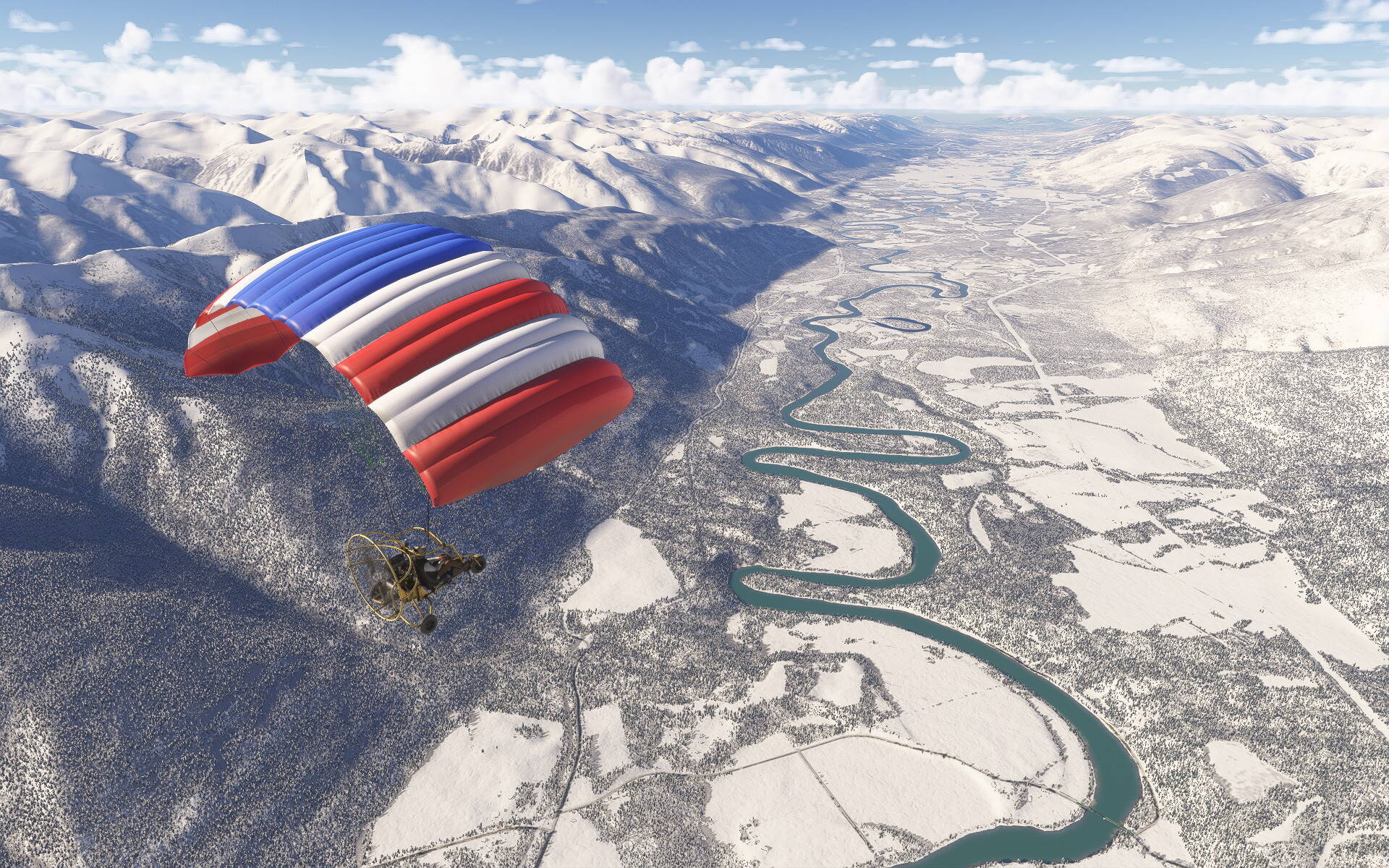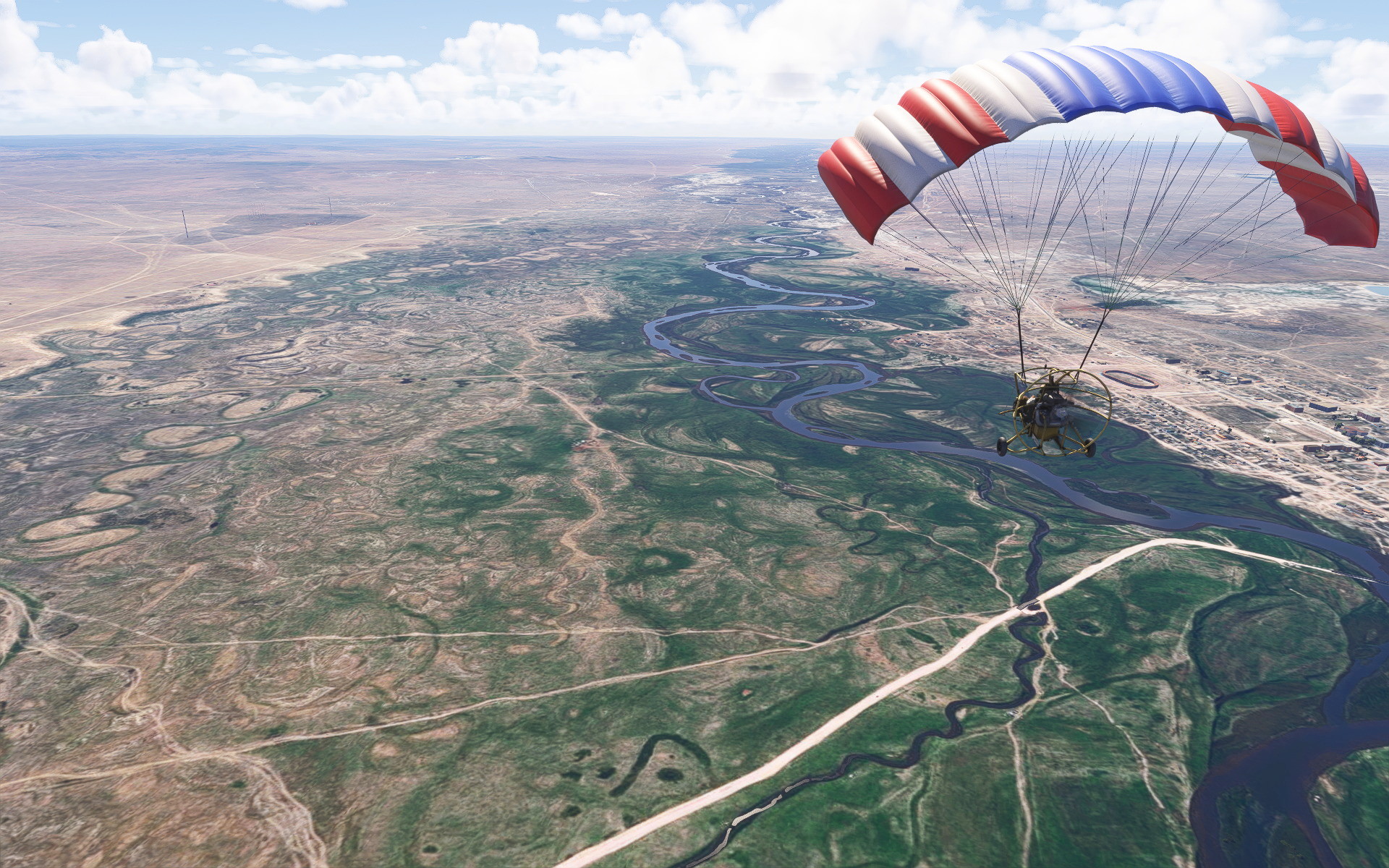 Oh, and sure I am aware that it is unrealistic to fly in some places with the Powrachute Sky Rascal but I’m not trying to be realistic here. This is just fun flying.