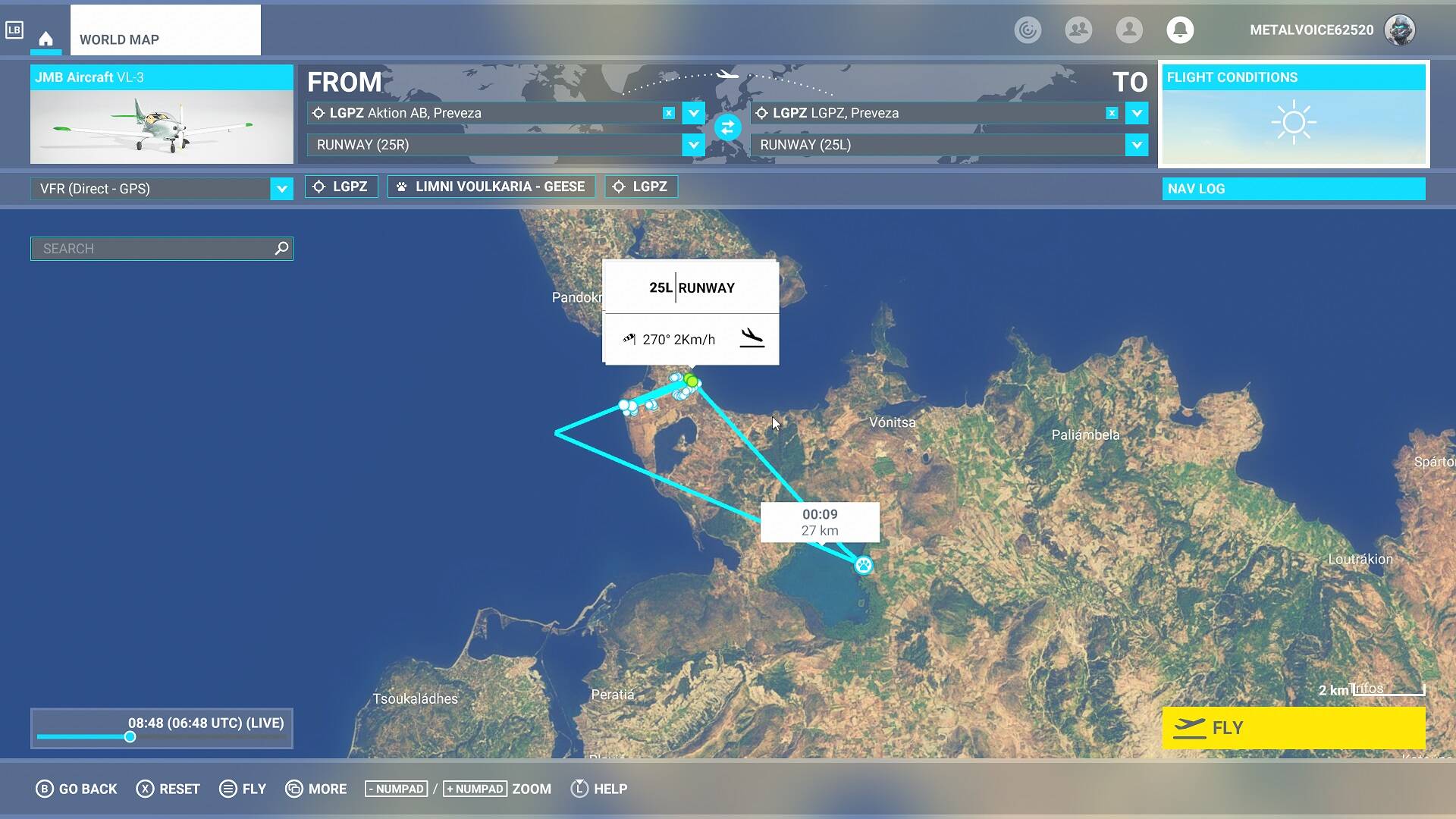 Now, start the same flight, but choose LGPZ as departure/arrival airport.