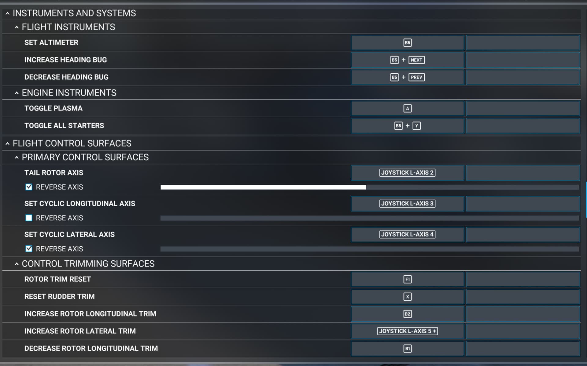 Any of you Xbox guys using Thrustmaster HOTAS for choppers? I did nothing as far as settings, its my usual custom settings for jets/prop planes and was able to fly I guess without using the throttle. How are you mapping everything for choppers? I have prop mapped to two buttons on the HOTAS to use for the Harrier thrust angle and I think that is mapped to throttle for helicopters so that might work to change throttle. Any tips from Xbox users with HOTAS would be greatly appreciated (Just picked up the 222b as my first payware chopper).