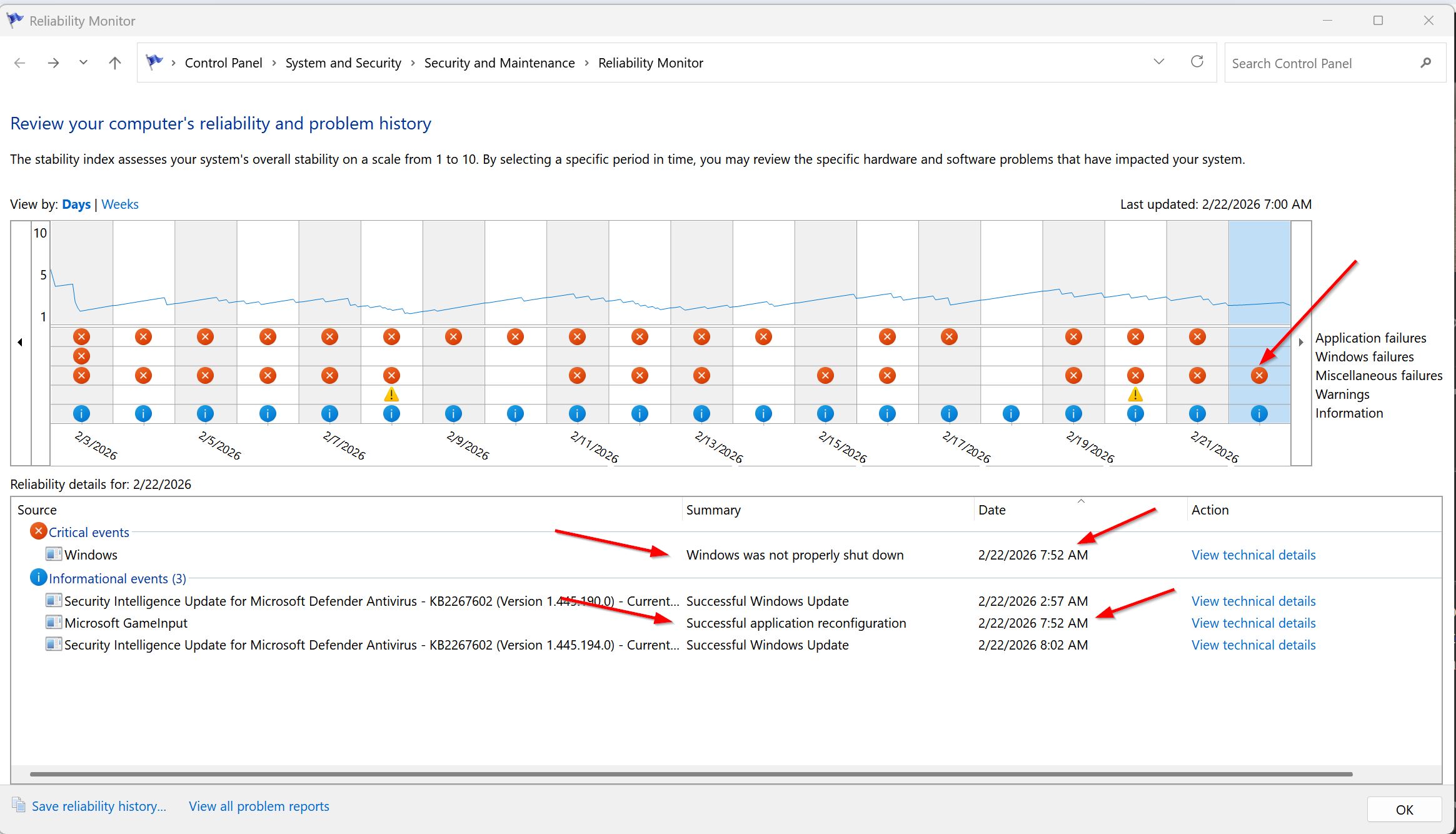 Over the last three weeks I have had some unexplained crashes to reboots not in gaming but just out of the blue often at night. I thought this might have been due to some overclocking experiments but nope. Careful examination of the Reliability Monitor shows that almost all the reboots occur at exactly the same time to the second as this informational item: