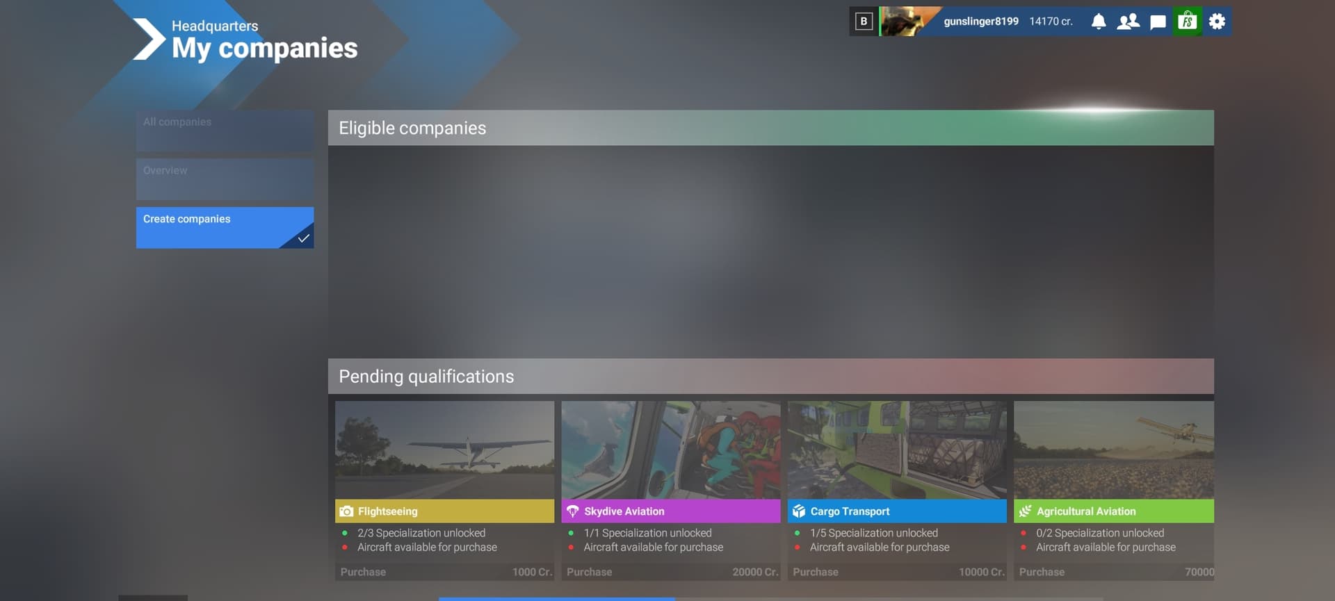 Create companies sometimes bug out. The Aerial advert was greyed out for a long time after completing prerequisites. Also, the Medevac company is greyed out too, and can create one. Pic attached.