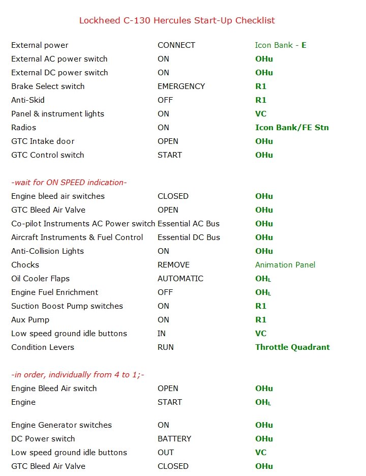 For example, here’s my kneeboard html file for the (CS) C-130 start-up: