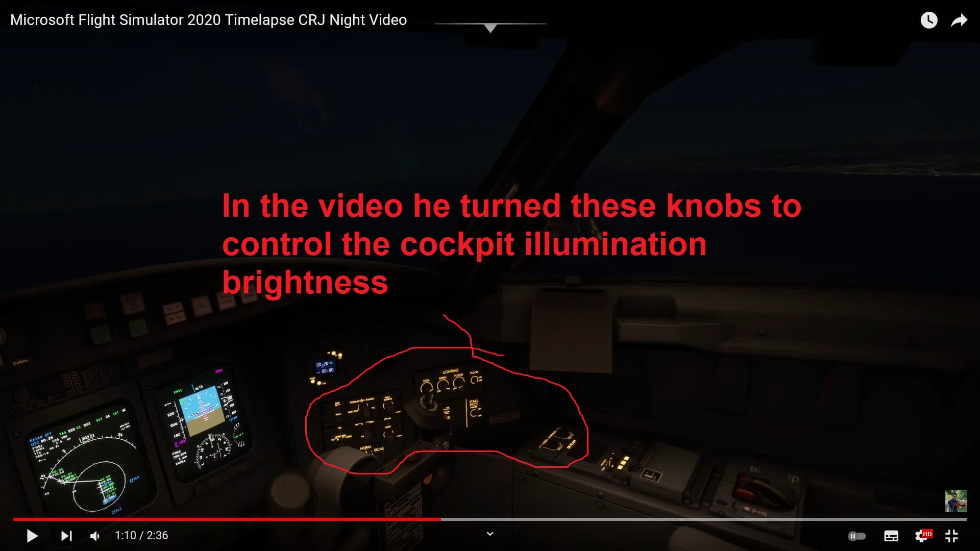 Is the illumination not bright enough or do you don´t know where the turning knob is? Well in one video I saw where the YouTuber turned on the cockpit lights and I made a screenshot for you.