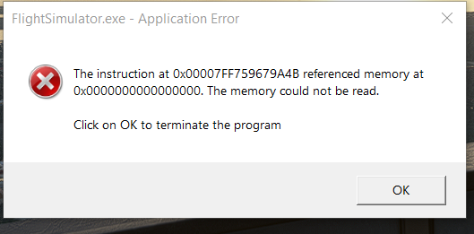 Faulting application name: FlightSimulator.exe, version: 1.25.7.0, time stamp: 0x00000000