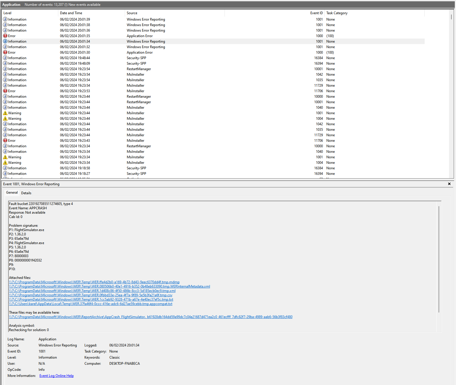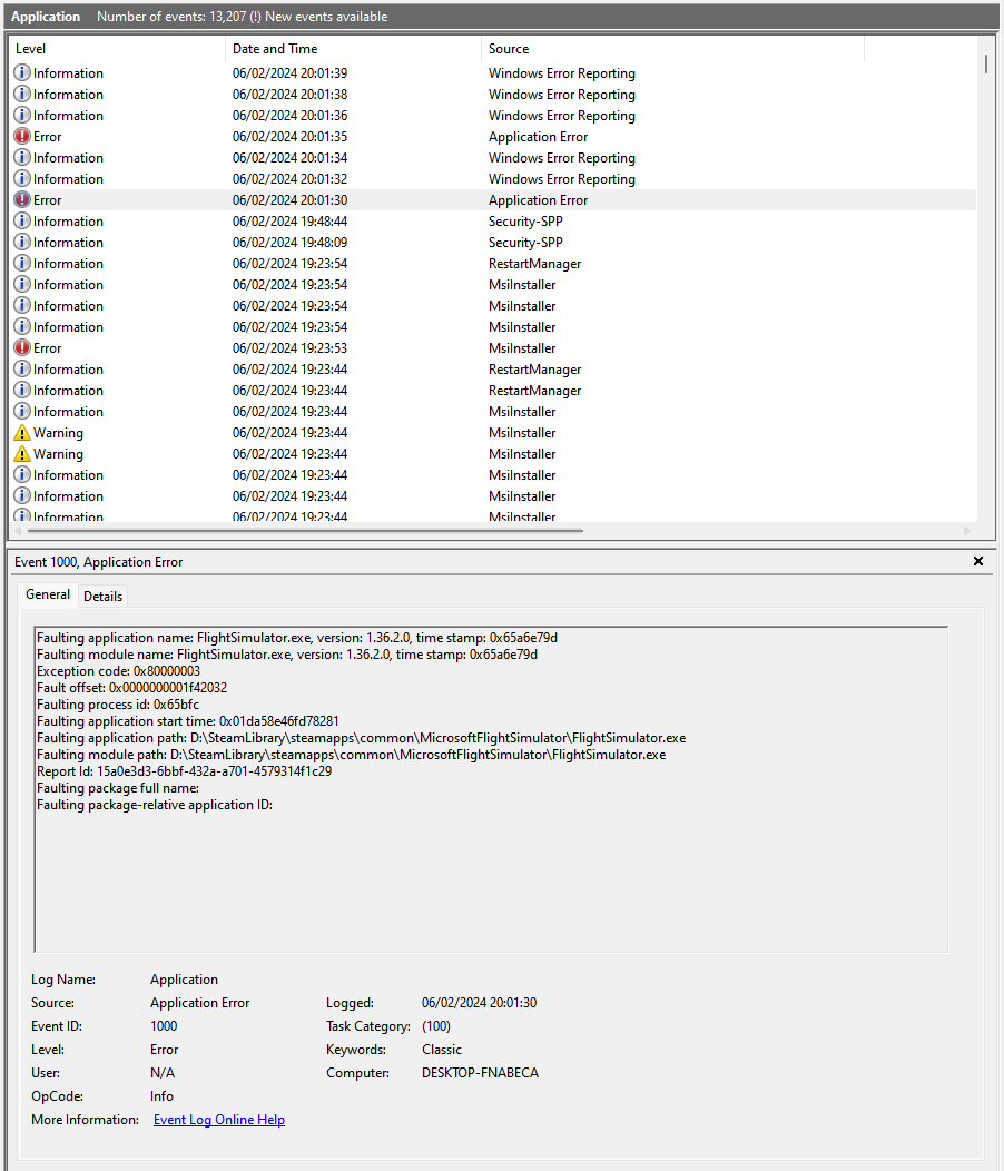 I got a CTD on APP on EHAM with the headwind A330, and bad weather, I don’t know if that was part of the problem. Unfortunately, I’m not very good at using the data from Event Viewer since I got a bit drowned by fault buckets, fault offsets and exception names, so if someone could help or give a direction, that would be great.