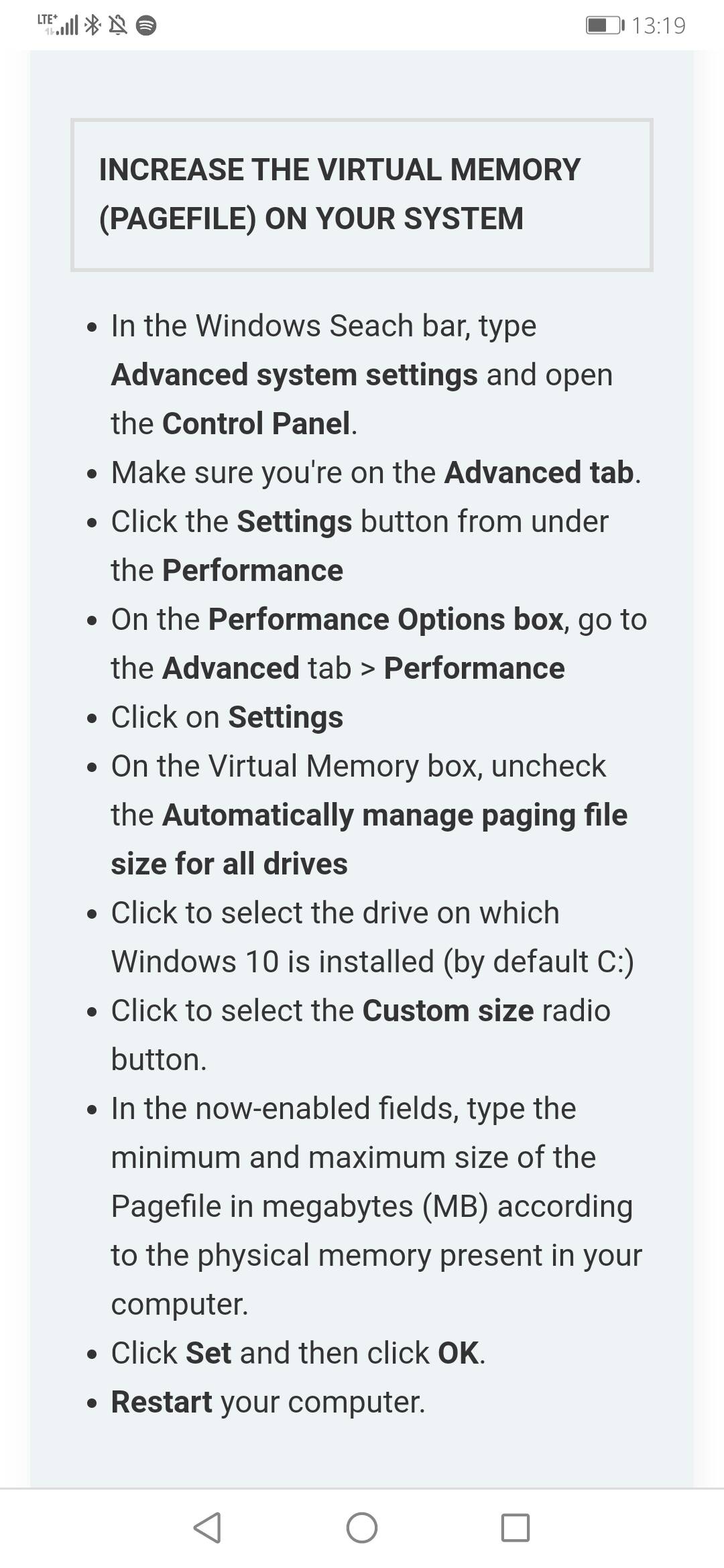 Otherwise don’t know why windows mean it has not enough virtual memory.