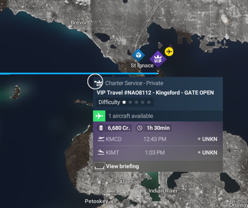 - Freelance charter mission from KMCD Mackinac Island to KMIT